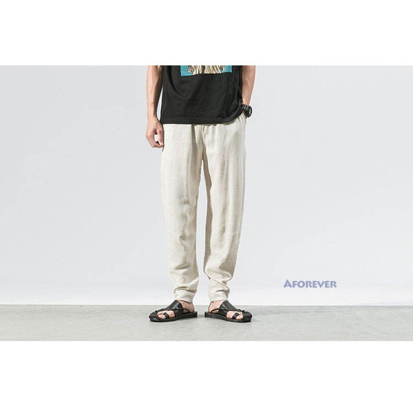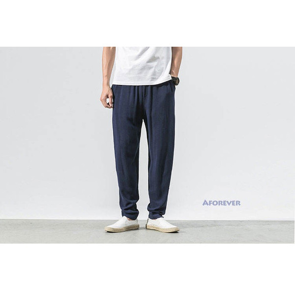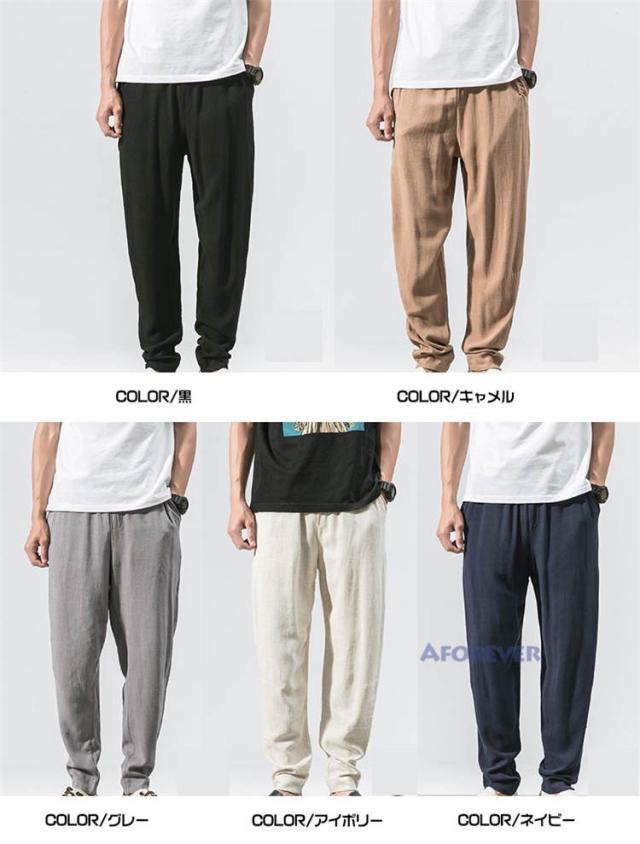サルエルパンツ リネンパンツ メンズ ゆったり 無地パンツ チノパン 麻パンツ 綿麻 涼しいズボン 通気性