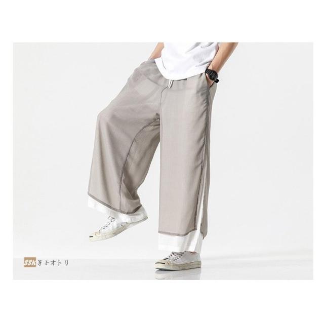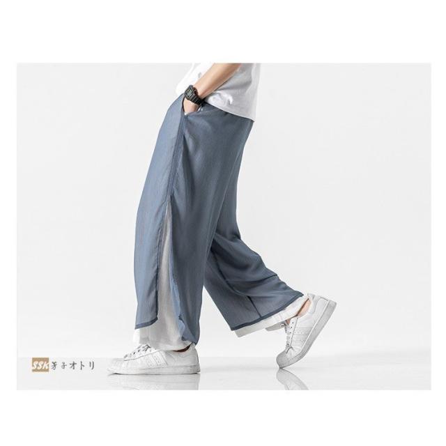 ワイドパンツ 涼しいズボン サルエルパンツ メンズ 中華風夏ズボン ゆったり イージーパンツ ボトムス 夏服