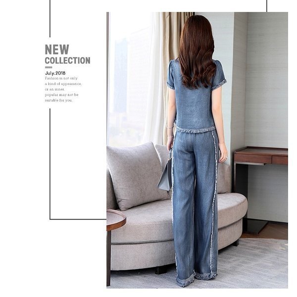 セットアップ レディース ワイドパンツ 夏 2点セット デニム パンツドレス カジュアル ガウチョパンツ 入学式 入園式 通勤