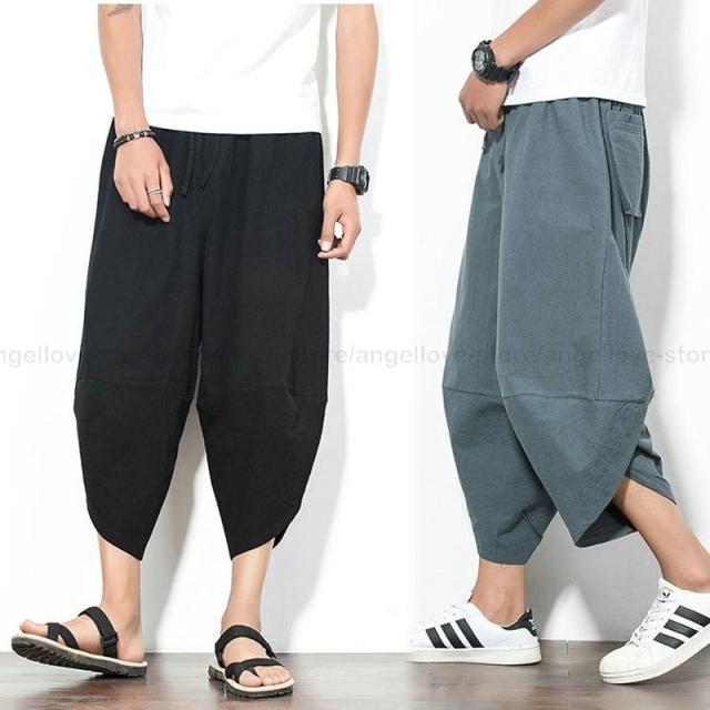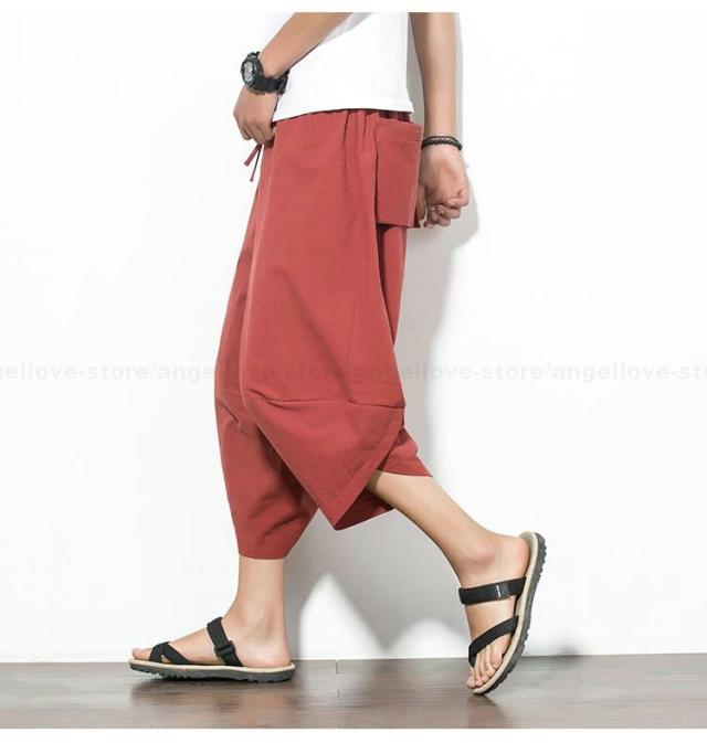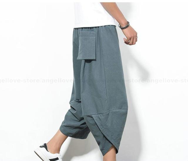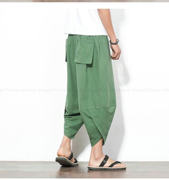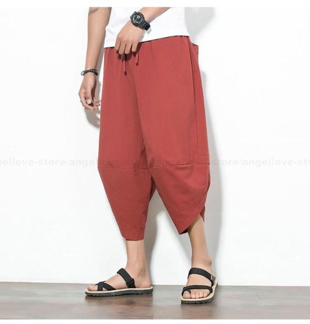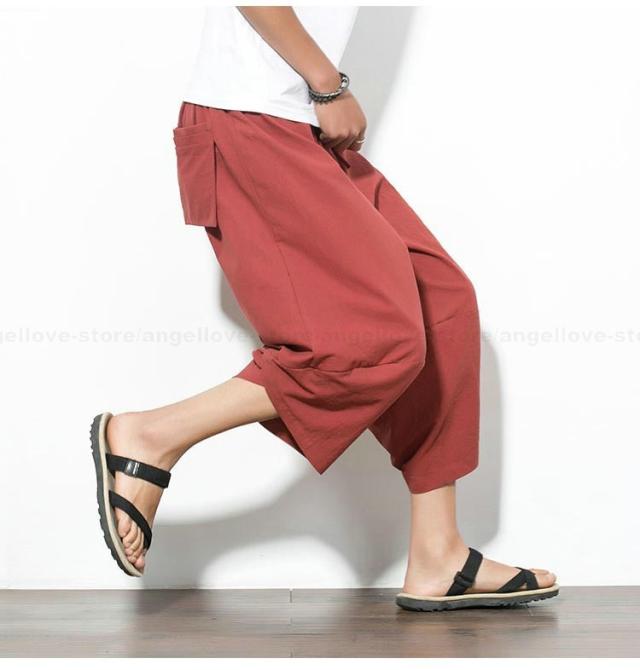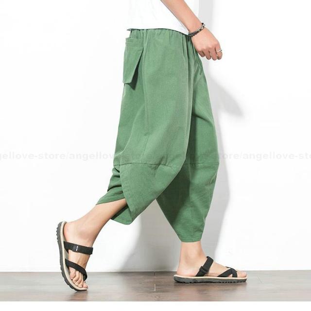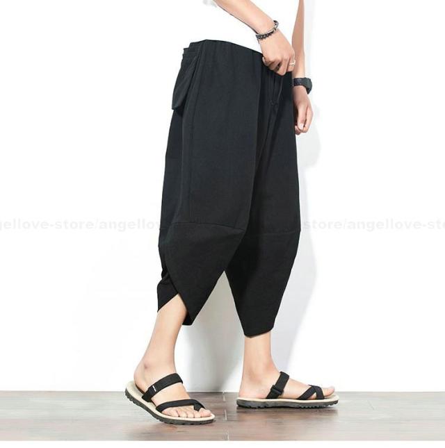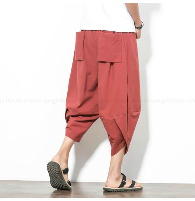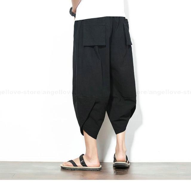 新作 大人気 リネンパンツ サルエルパンツ メンズ 夏 七分丈 涼しい チノパン ワイドパンツ 無地 カジュアルパンツ 涼しいズボン かっこいい