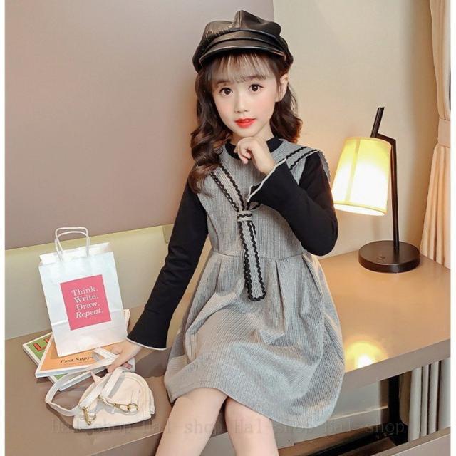 キッズ 長袖 ワンピース 子供服 春秋 キッズワンピース チェック柄 長袖ワンピース 子供ドレス お姫様 ジュニア おしゃれ 可愛い カジュアル 通学着 新品