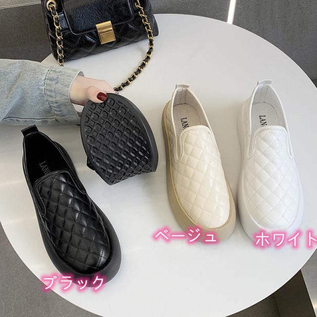 ファッション靴 スニーカー PUレザー ぺたんこ靴 厚底 スリッポン レディース 厚底スニーカー カジュアル キャンバス 旅行 長時間 美脚 疲れない 歩きやすい 痛くない 通勤 通学 黒 ベージュ 白