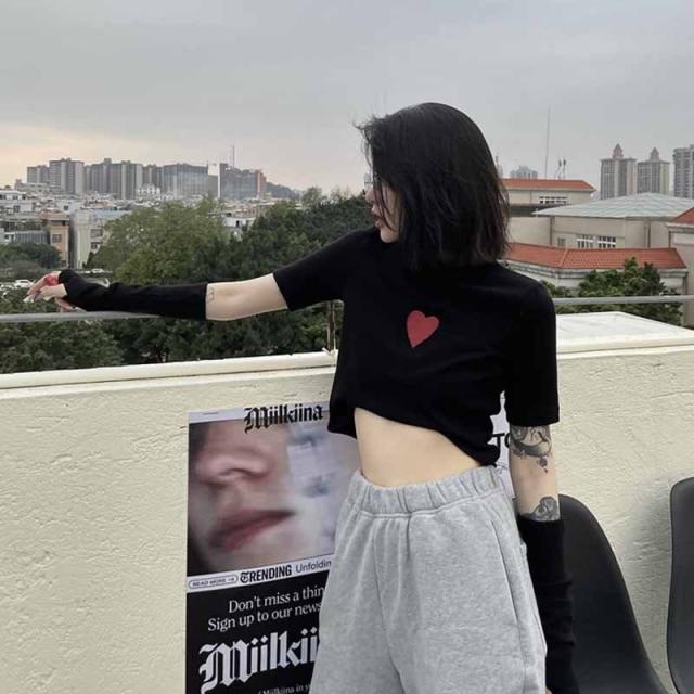原宿風 Tシャツ レディース おしゃれ 半袖 ショート丈 トップス へそ出し 韓国ファッション ヒップホップ ダンス衣装 ストリート系 BF風 カジュアル 春 夏
