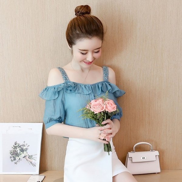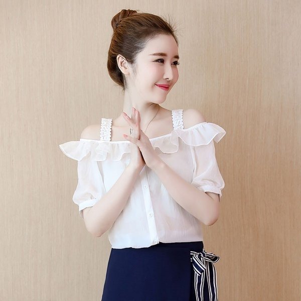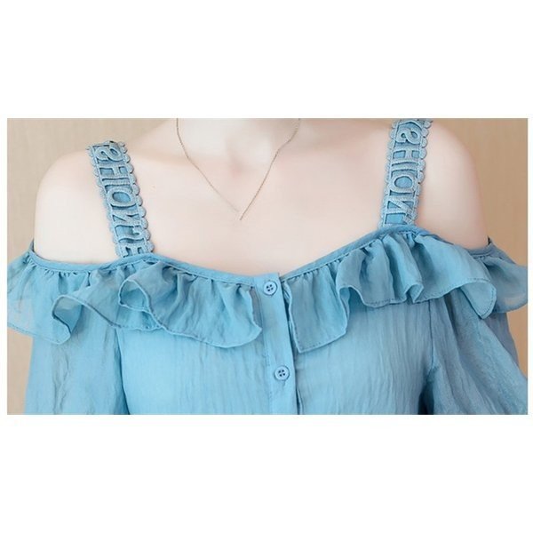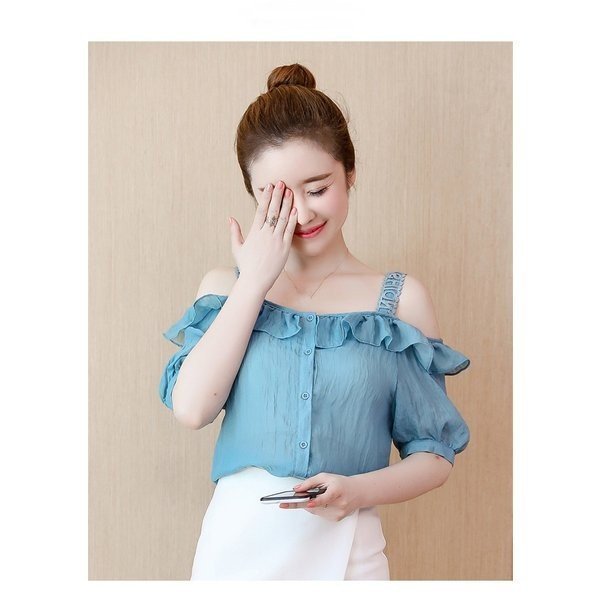 シフォン ブラウス 半袖 オフショルダー 無地 レディース 肩出し 半袖シャツ 女性用 薄手 トップス シャツ キャミソール ボ