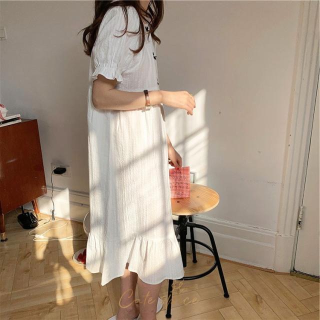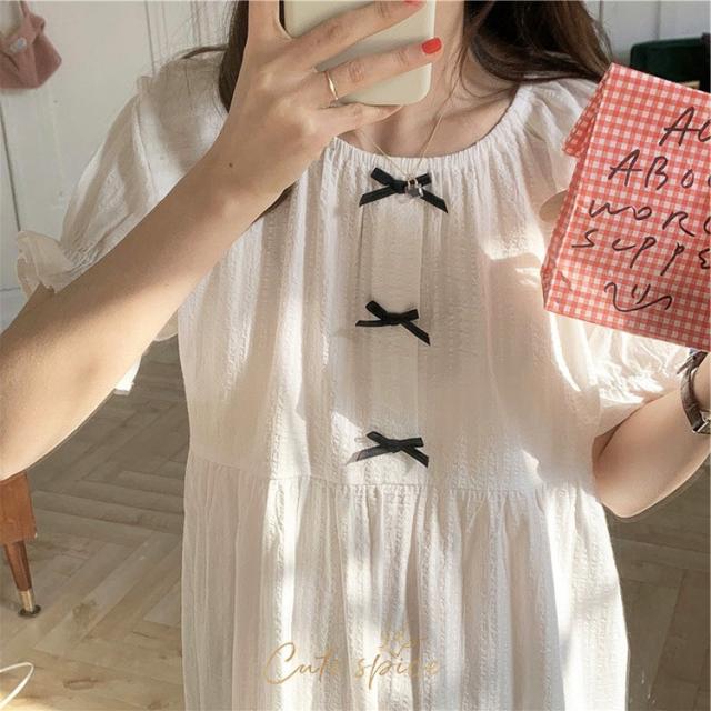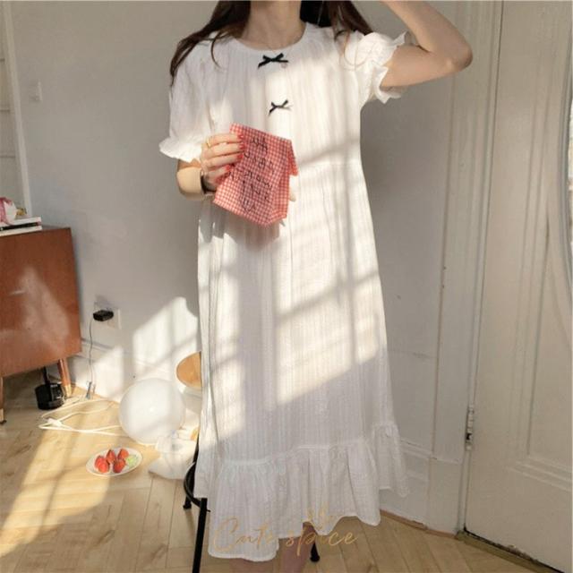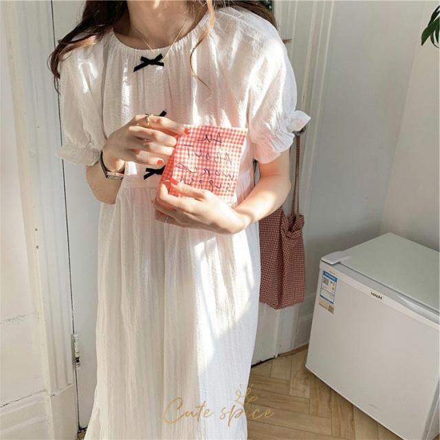 ネグリジェ 春夏 レディース 半袖ワンピース 白レースリボン 大人可愛いパジャマ お姫 ロング丈ネグリジェ ナイトロープ 部屋着 オシャレルームウェア ゆったり