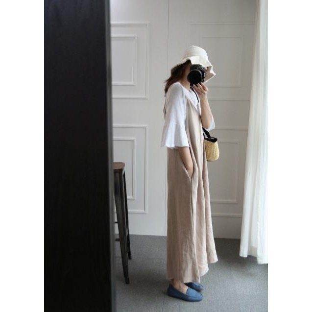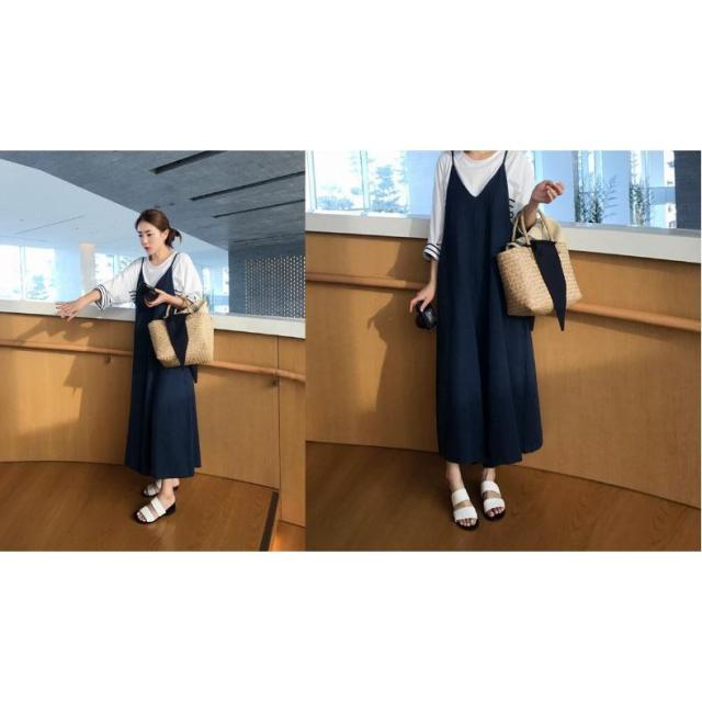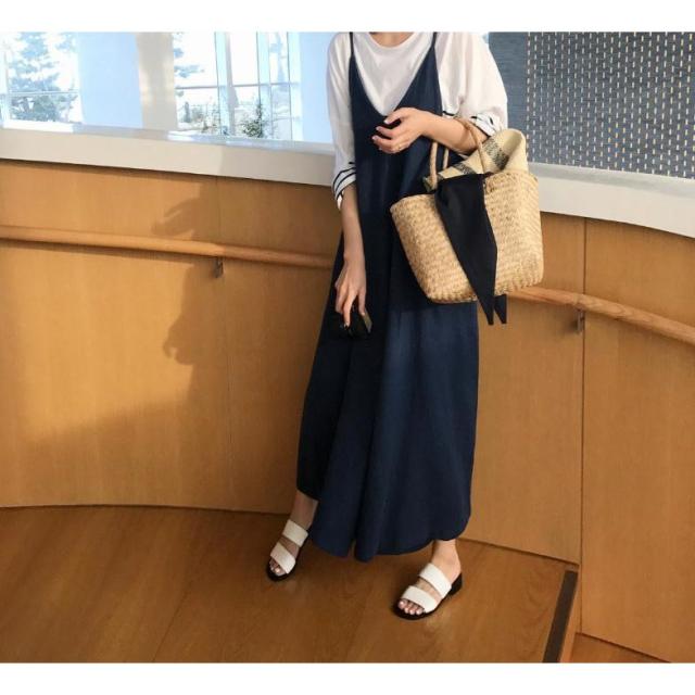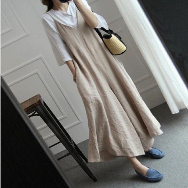 キャミワンピース Vネック ワンピース レディース ロングワンピース マキシ丈 ゆったりカジュアル体型カバーカジュアル サテン 楽ちん無地春夏秋 冬