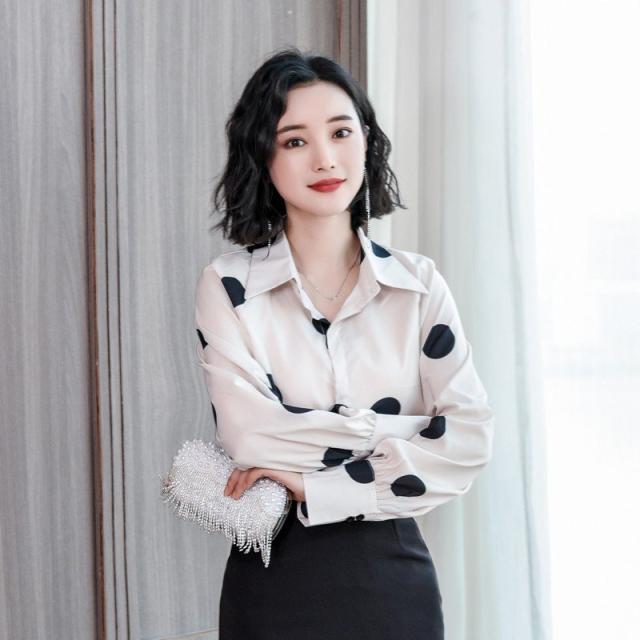 ブラウス 春夏 大きいサイズ シフォンブラウス レディース ドット柄シャツ 長袖ブラウス シフォンシャツ リゾートブラウス ゆったり カジュアル
