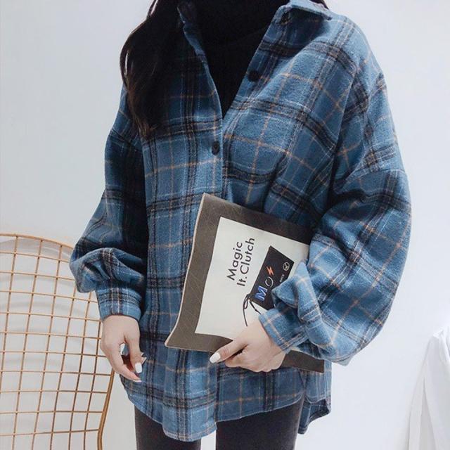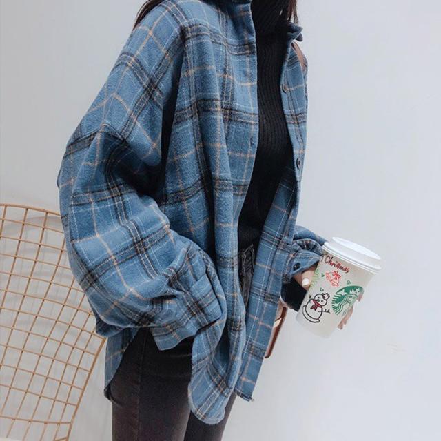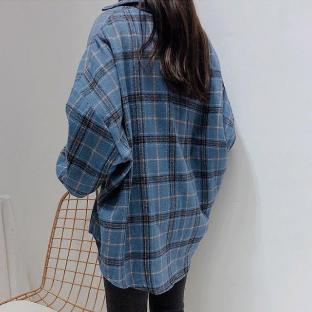 チェックシャツ 長袖 レディース アウター チェック柄 シャツ 韓国
