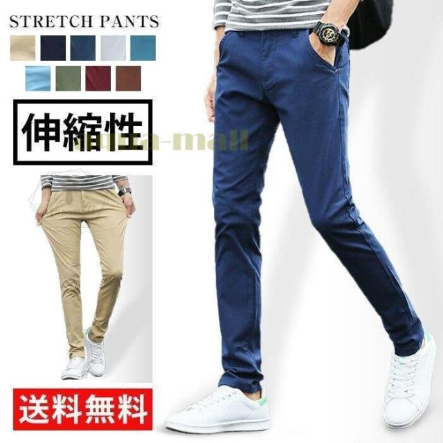 チノパン メンズ ロング丈 ストレッチ カラーチノパン スキニー 伸縮性 スリム 細身 ボトムス
