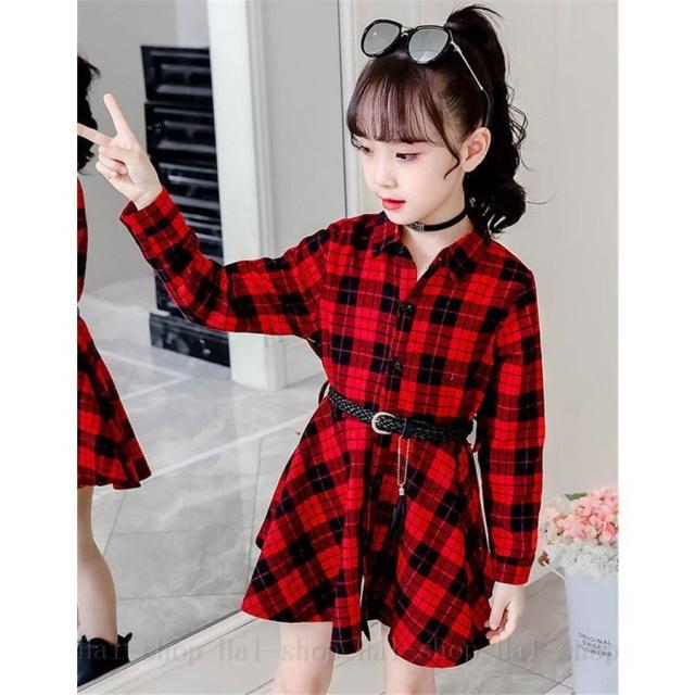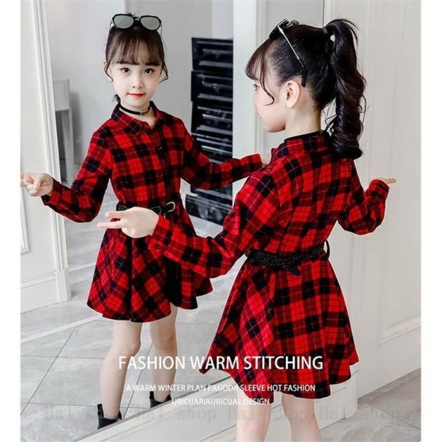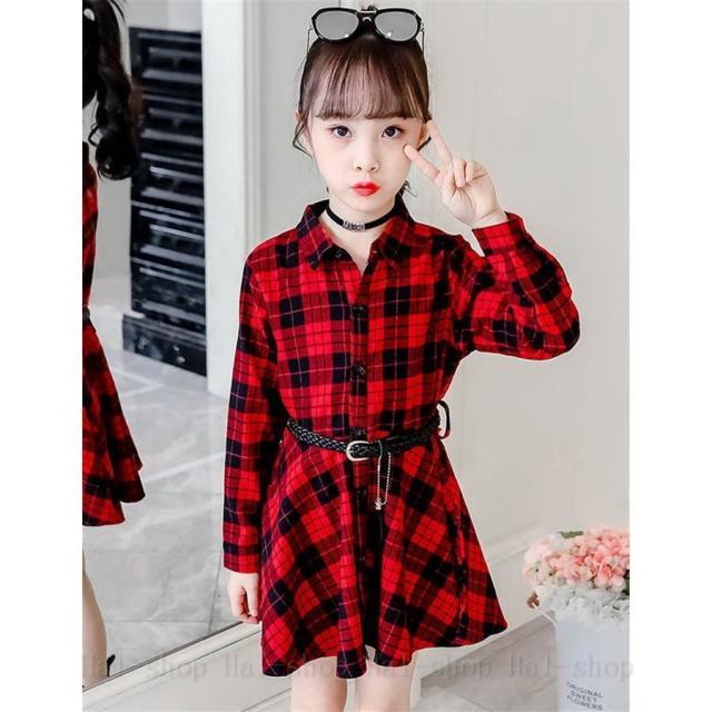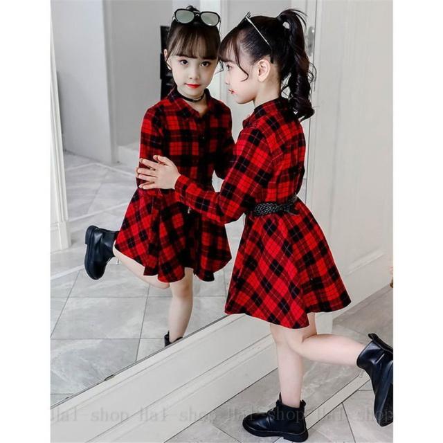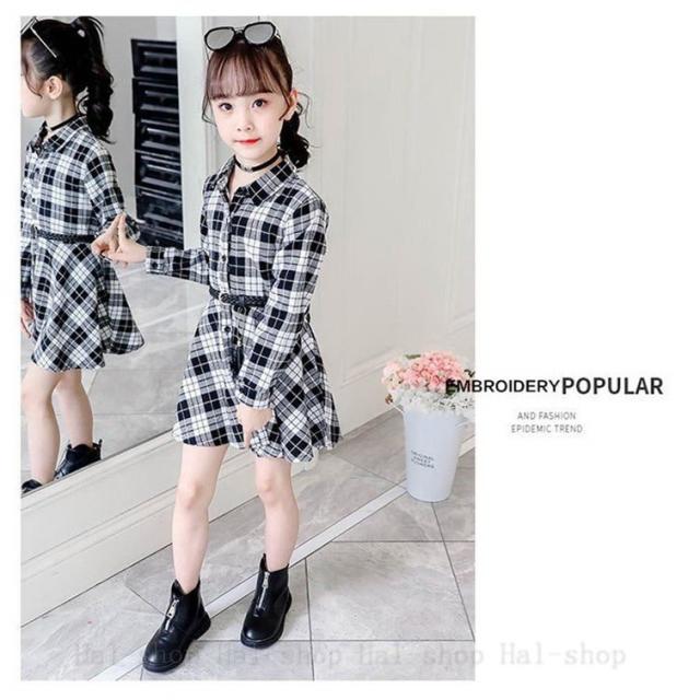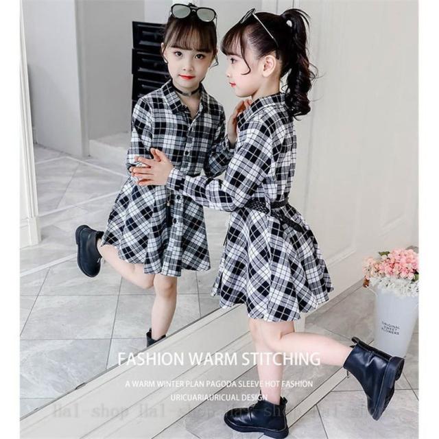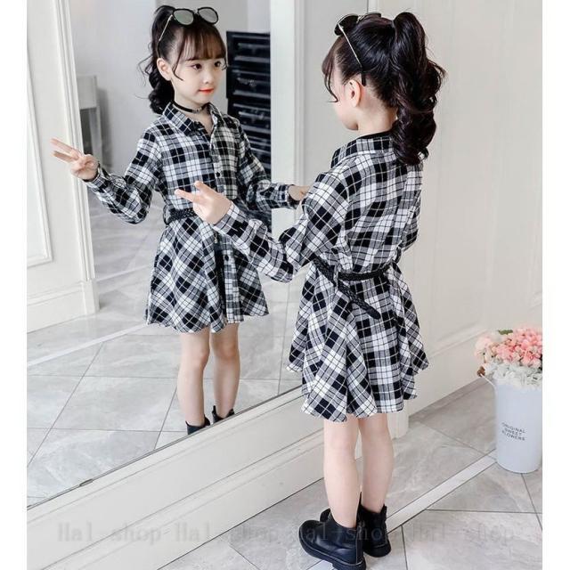 ワンピース 長袖 子供服 春秋 キッズワンピース シャツワンピース チェック柄 チュニック 子供ドレス ジュニア ベビー服 おしゃれ 可愛い 新品 150 160