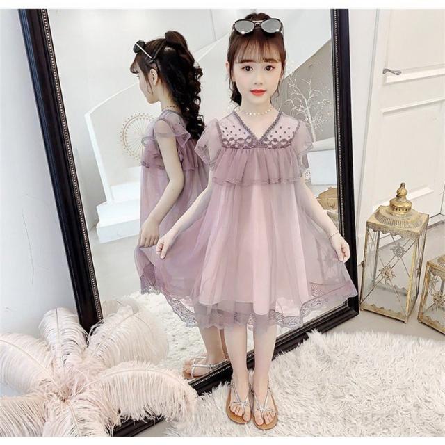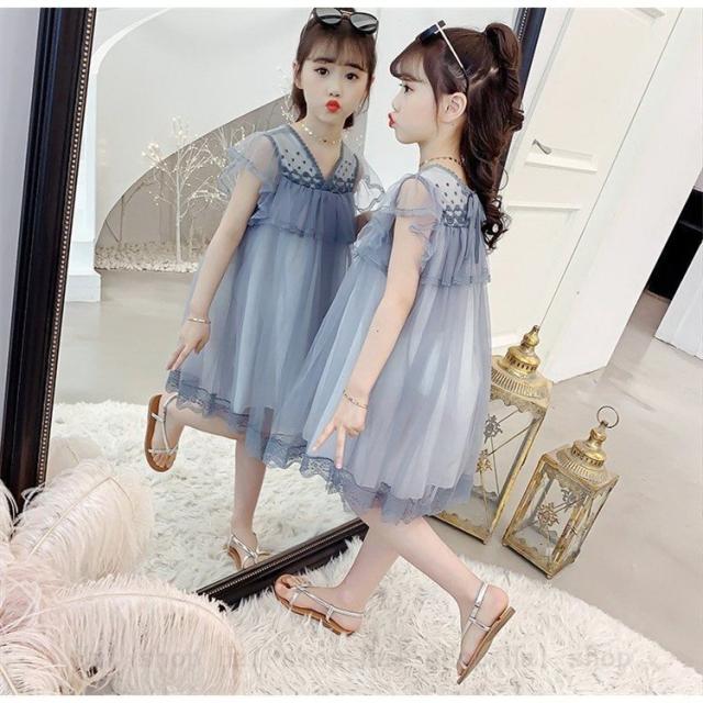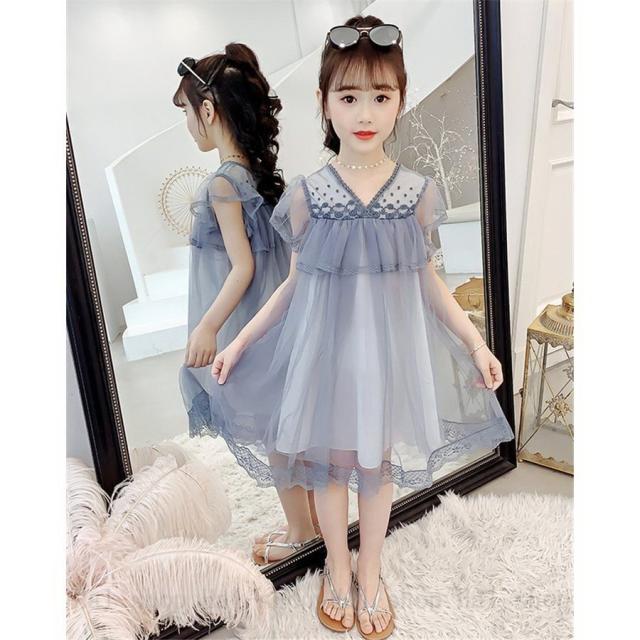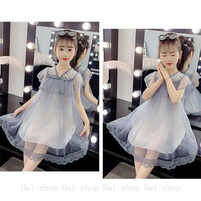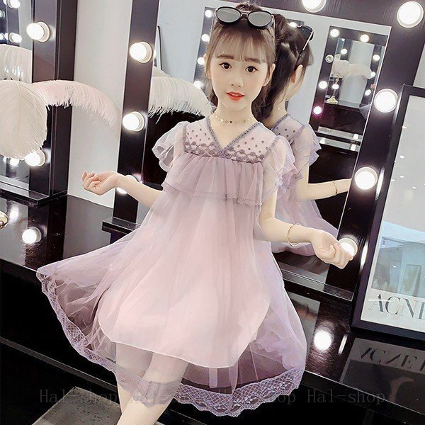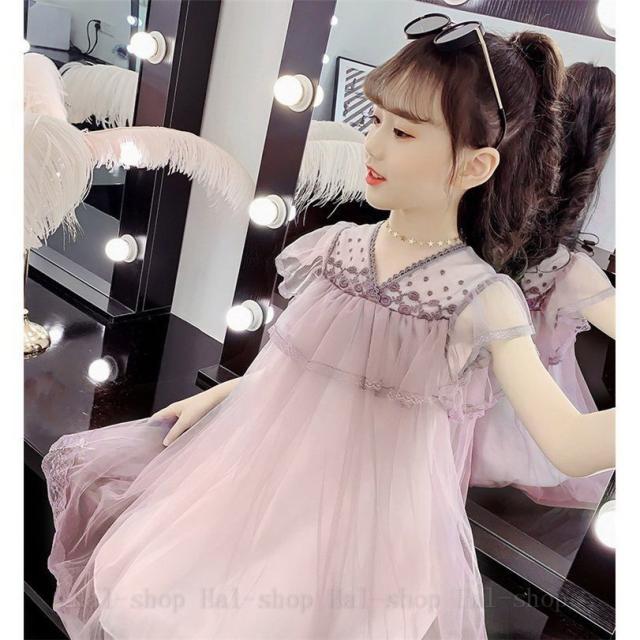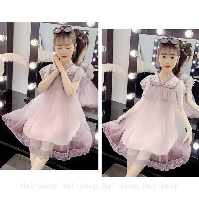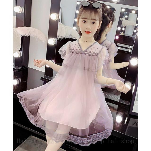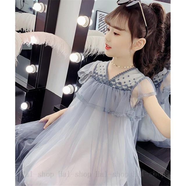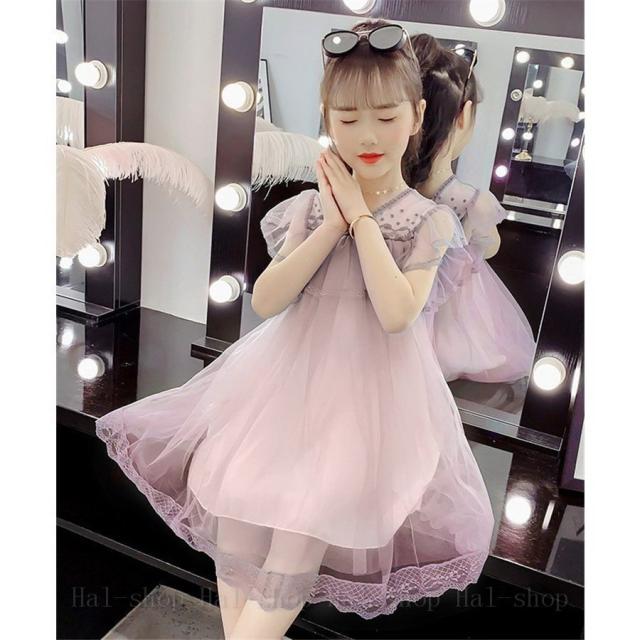 ワンピース 春夏 子供服 女の子 半袖 膝丈ワンピース チュール チュニック 子供ドレス ジュニア お姫様 おしゃれ カジュアル 可愛い 新品 150