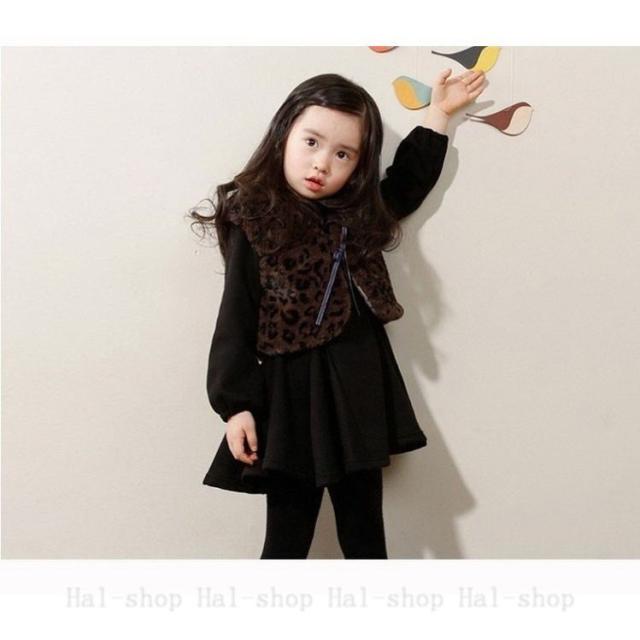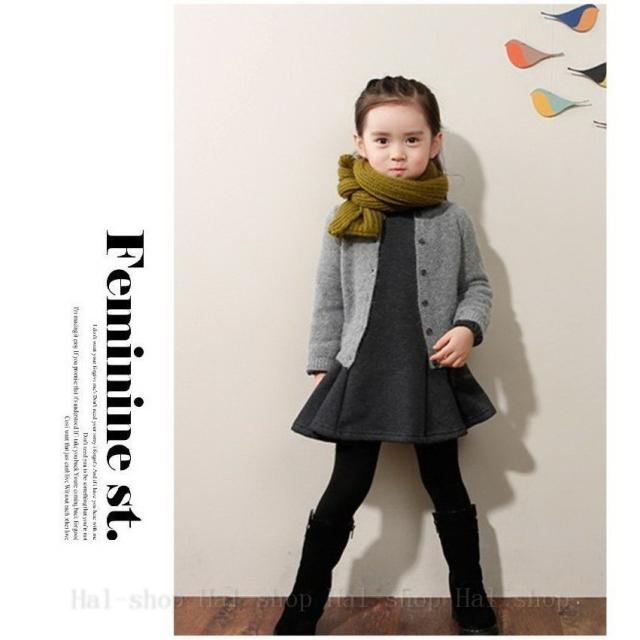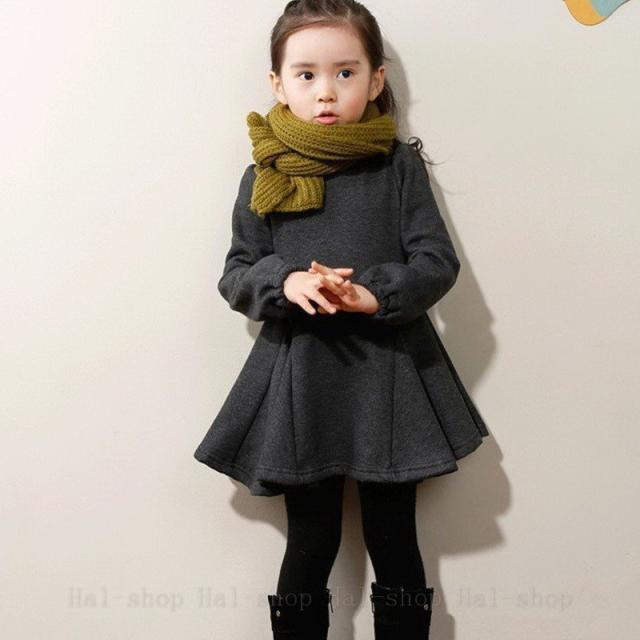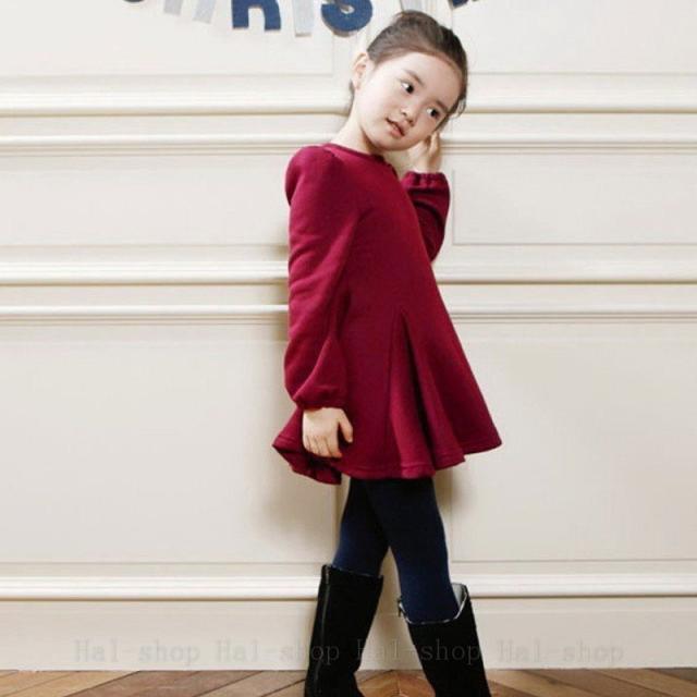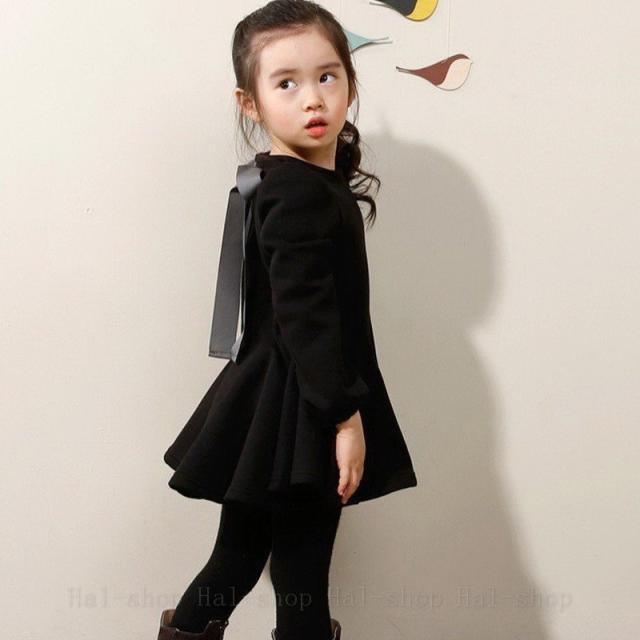 ◇長袖ワンピース&レギンス ◇リボン付き 子供服 裏起毛 3色 韓国風 子ども服 秋 冬 女の子 キッズ用100cm 110cm-160cm 上下セット 2点セット