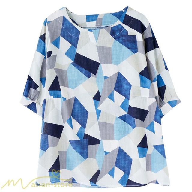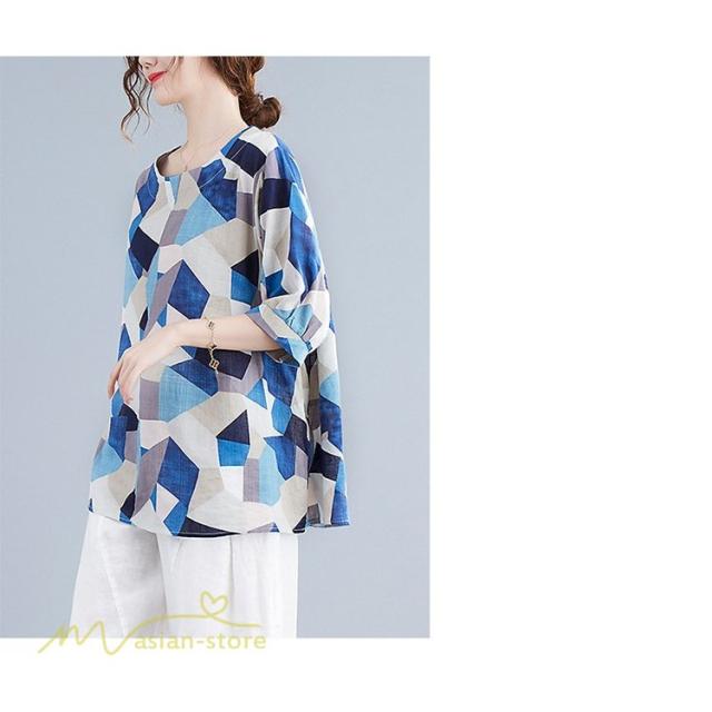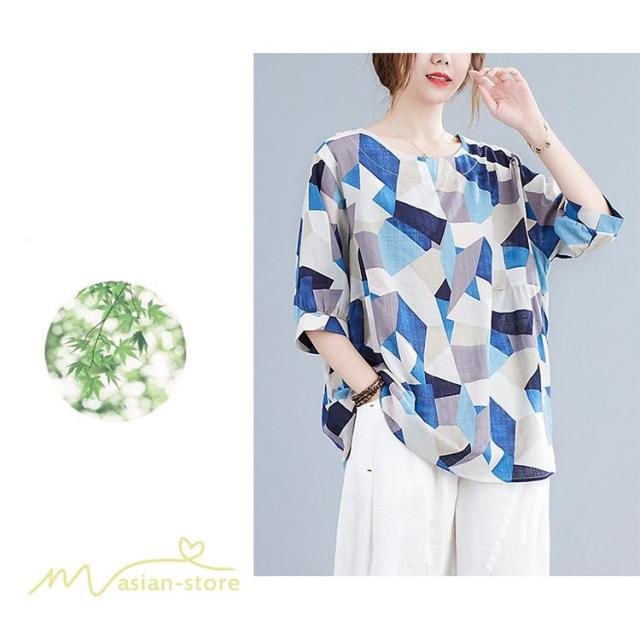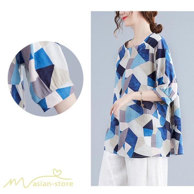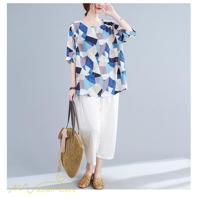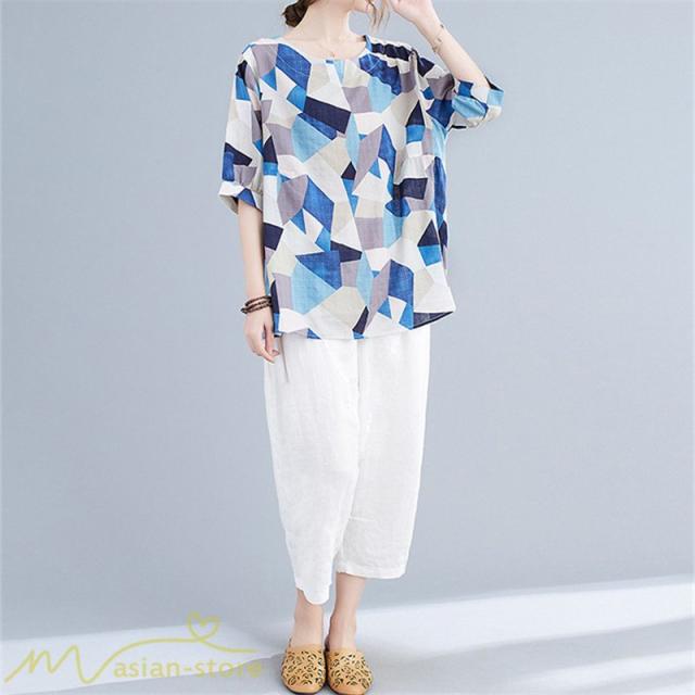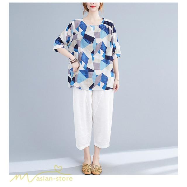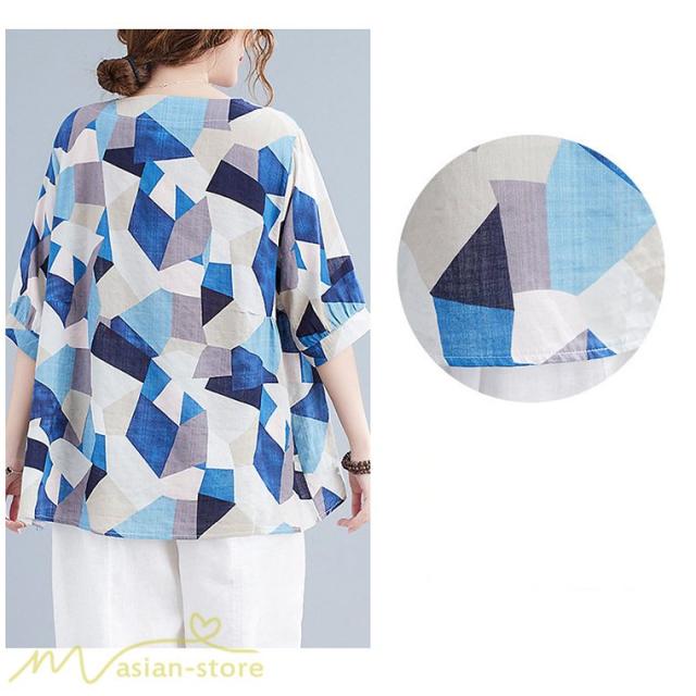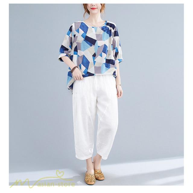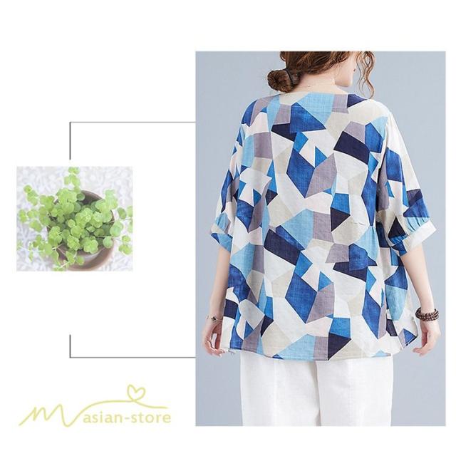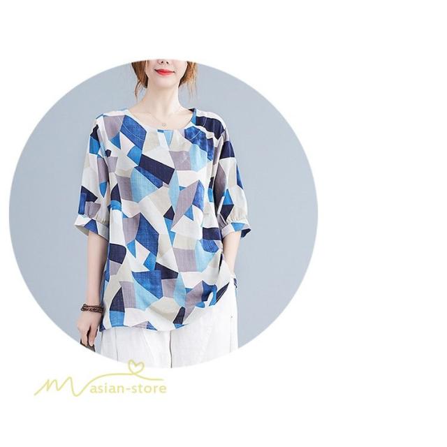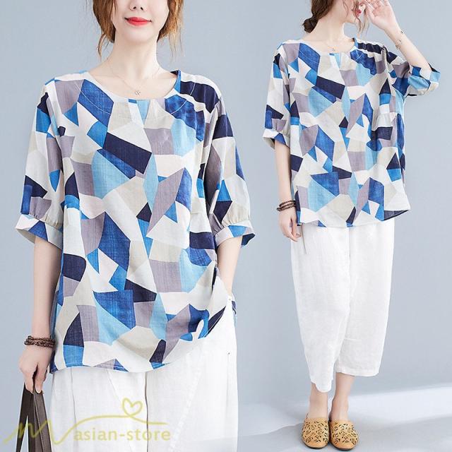 Tシャツ レディース 5分袖 麻綿 クルーネック 夏服 ゆったり ワイドTシャツ カットソー トップス コットン リネン 着痩せ 大きいサイズ 体型カバー おしゃれ 夏