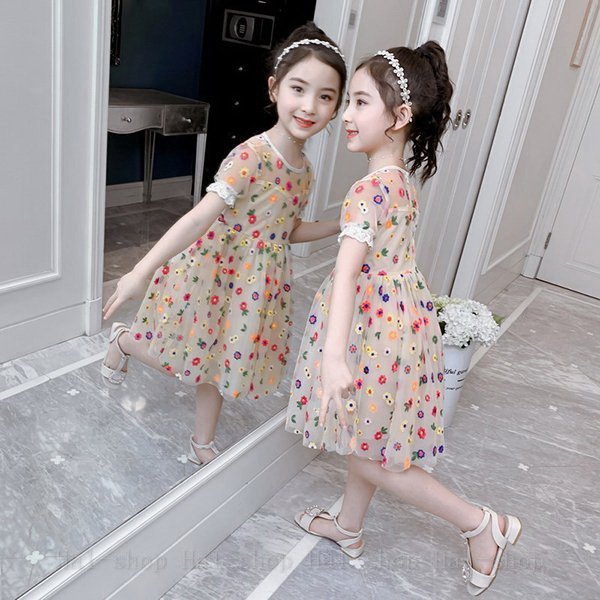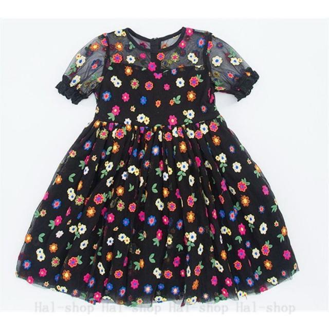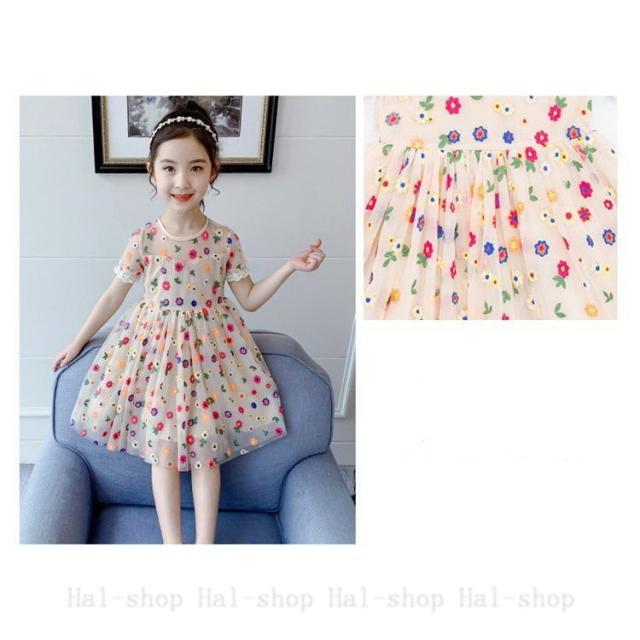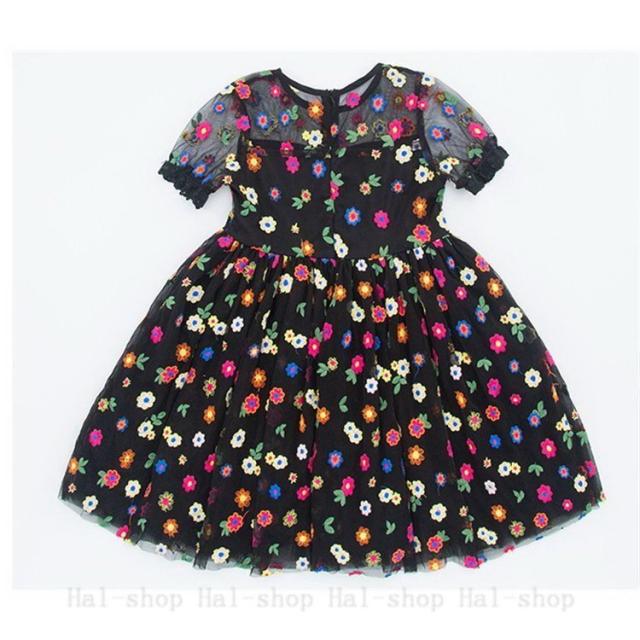 キッズ 子供服 ワンピース 女の子 キッズワンピース 半袖ワンピース 花柄 刺繍 チュール 子供ドレス ジュニア 子ども お姫様 おしゃれ 可愛い カジュアル