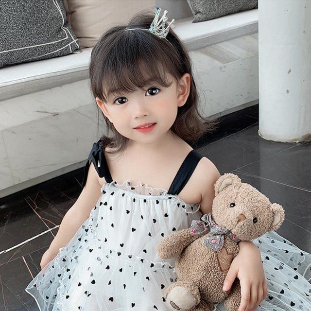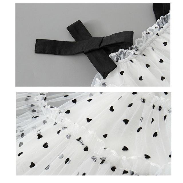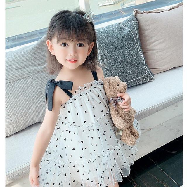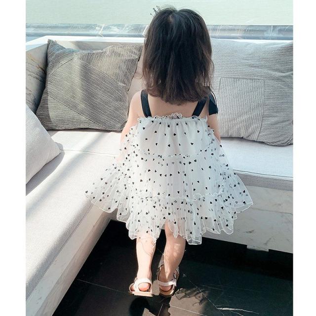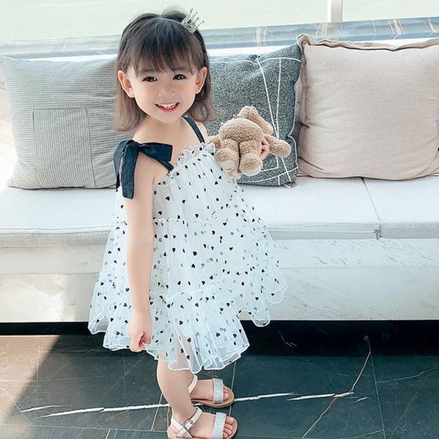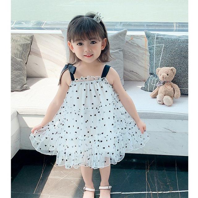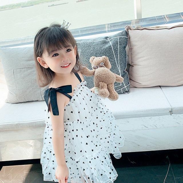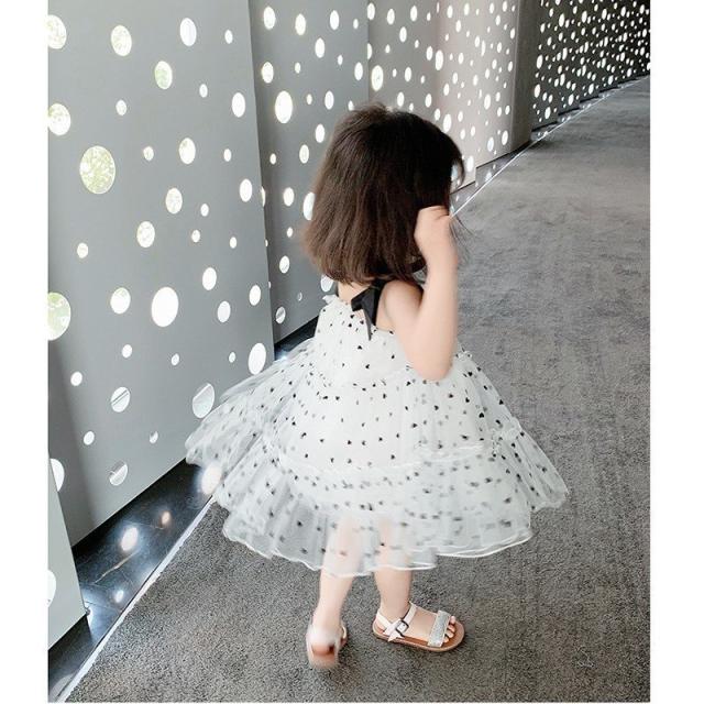 キャミソールワンピース 子供服 キッズ ベビー 女の子 カジュアルドレス ノースリーブ 膝丈 チュールレース メッシュ ハート ティアードフリル ギャ