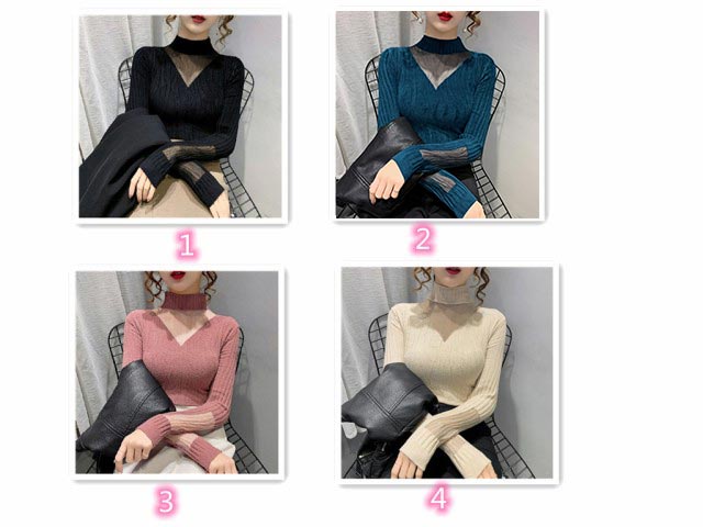 チュールレース ニットトップス レディース ハイネックニット ニット セーター 秋冬 インナー ハイネック シースルーニット フェミニン セクシー 女性