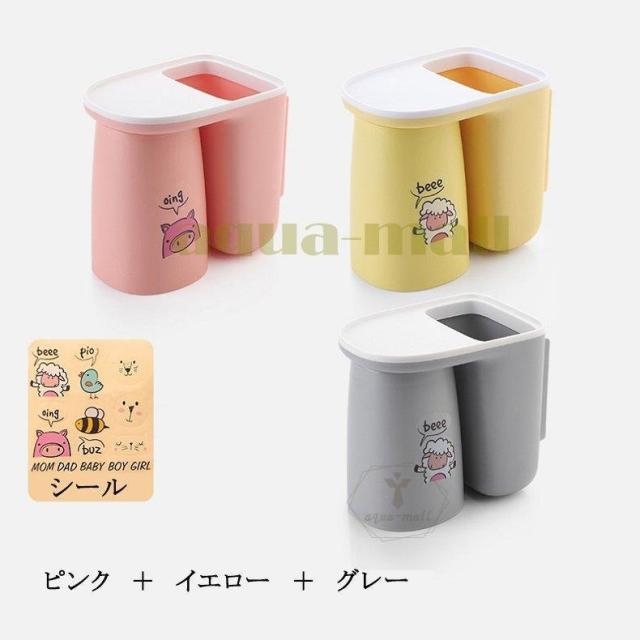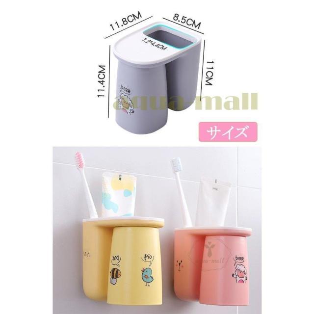 歯ブラシスタンド 歯磨きコップ ホルダー 洗面台収納 一台多役 歯磨き粉ホルダー バスルーム収納 自動歯磨き粉チューブ 壁掛け 歯ブラシホルダー 粘着式