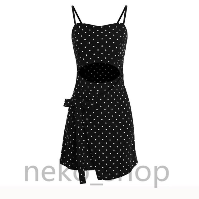 ボディコン ミニワンピース レディース 水玉柄 キャミワンピ タイトワンピ 透かし彫り ヒップパック スリム 着痩せ セクシー ドレス 韓国風 20代30代40代