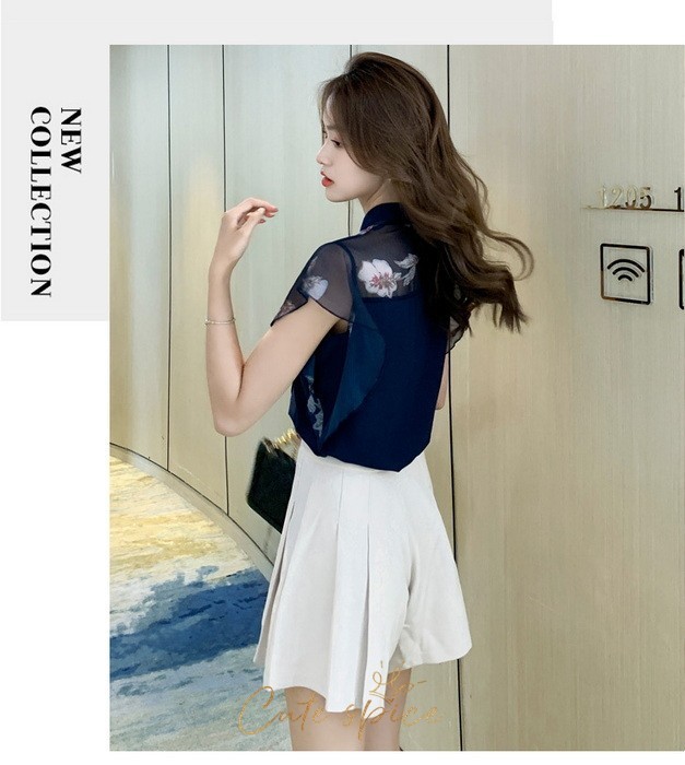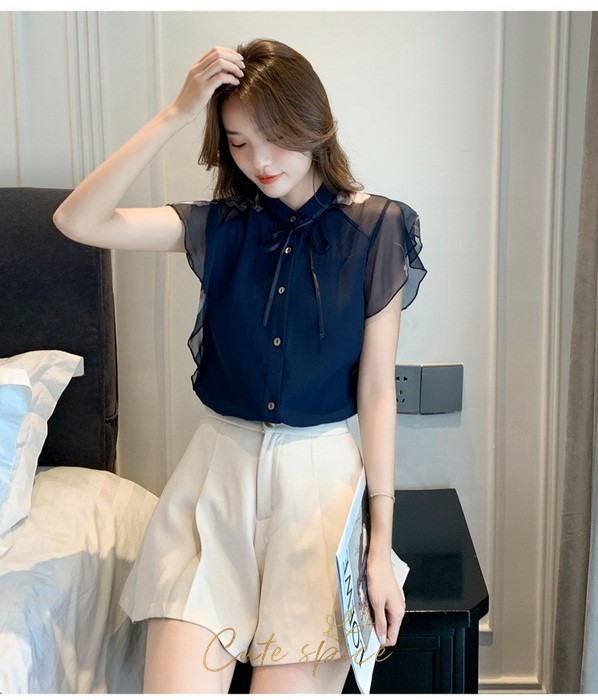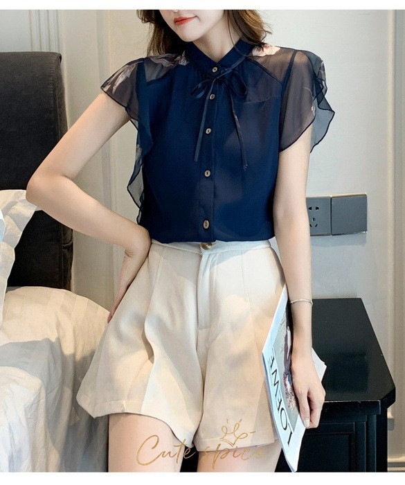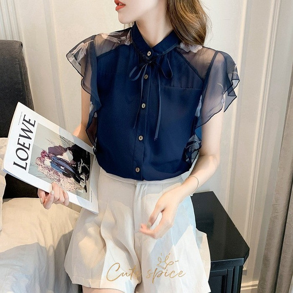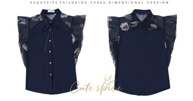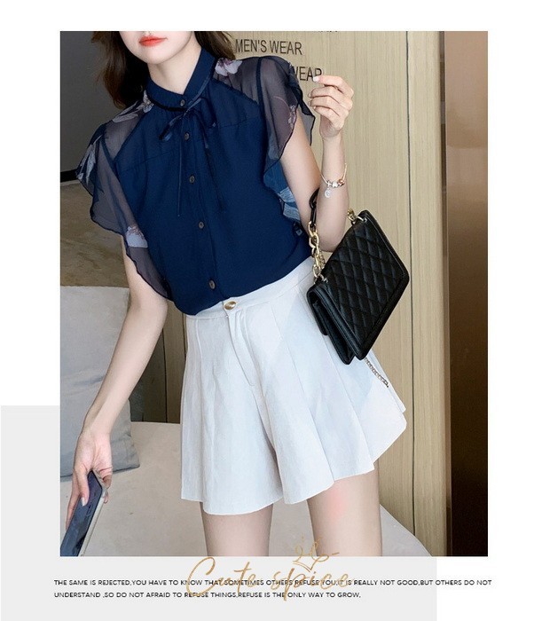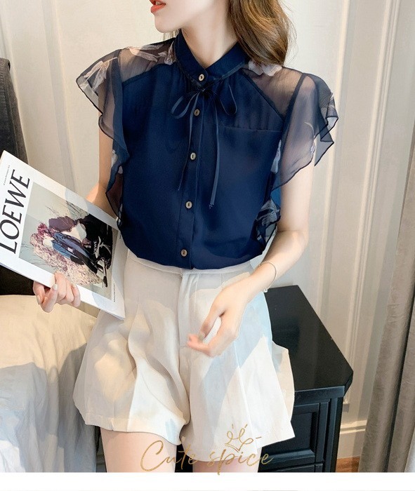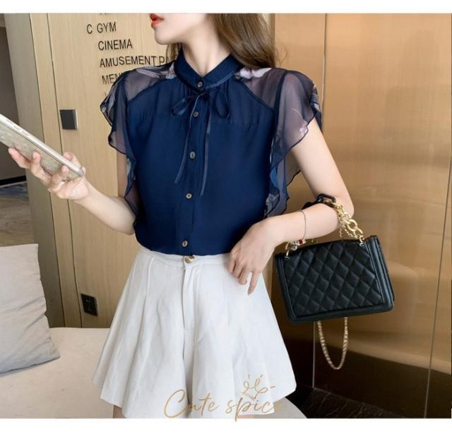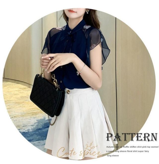 ブラウス レディース 40代 春夏新作 オシャレブラウス シフォンブラウスリボンネック フレンチスリーブ 花柄 半袖トップス 韓国風 大人 通勤 ゆったりシャツ