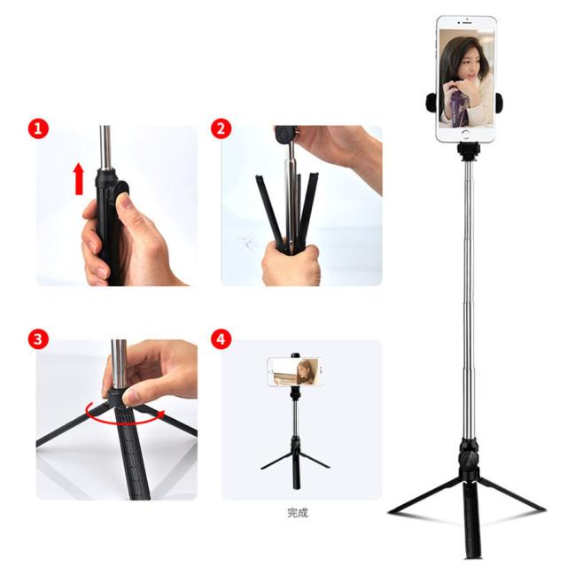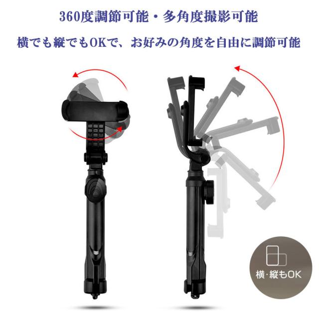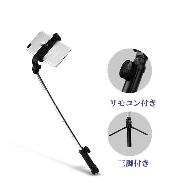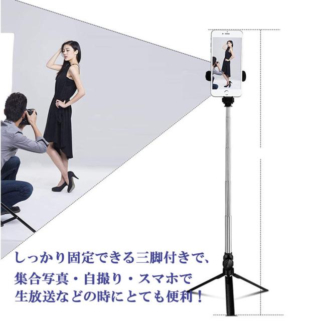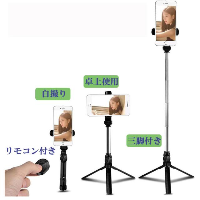 自撮り棒 三脚付き セルカ棒 リモコン付き スマホ 自撮り 伸縮調節可能 360度回転可能 コンパクト 軽量 写真 撮影 旅行