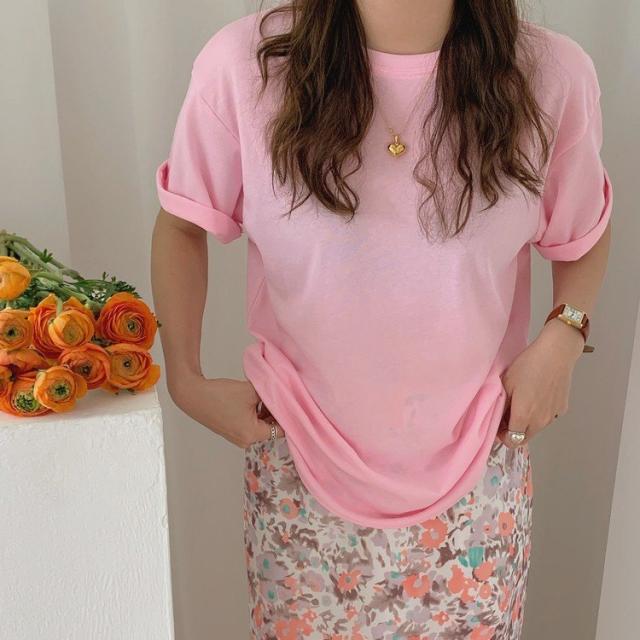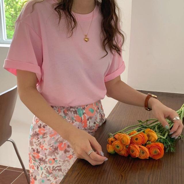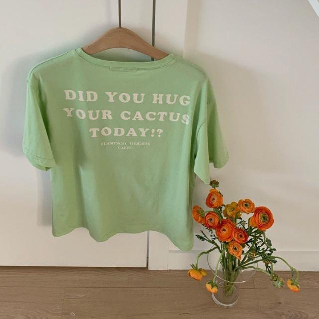 Tシャツ レディース 半袖 プリント ネオン マカロン 5分袖 グレー 白 ピンク グリーン 韓国ファッション メール便