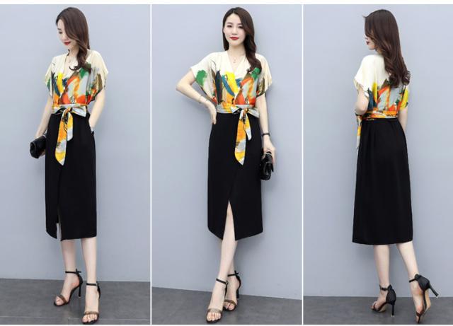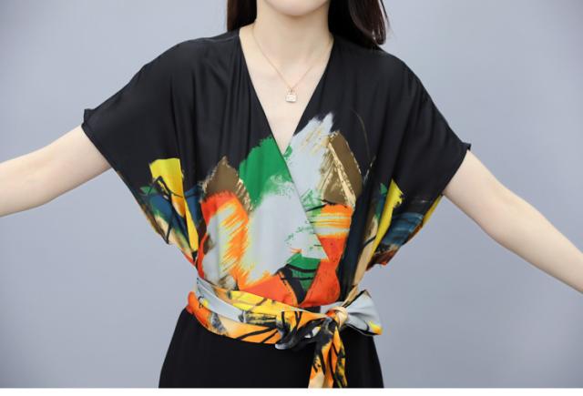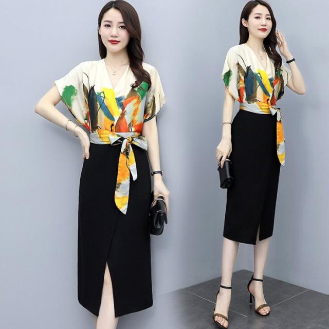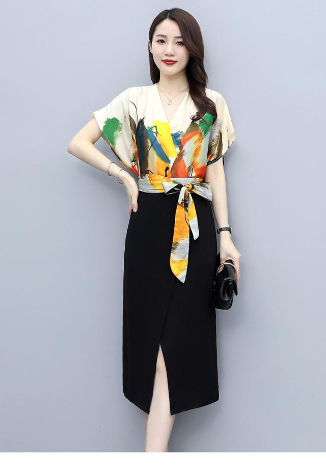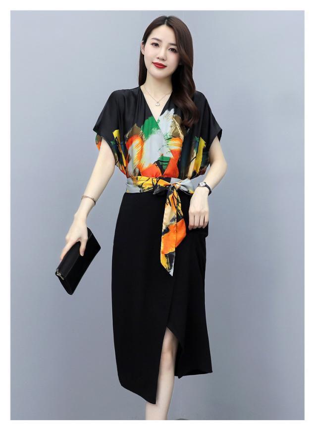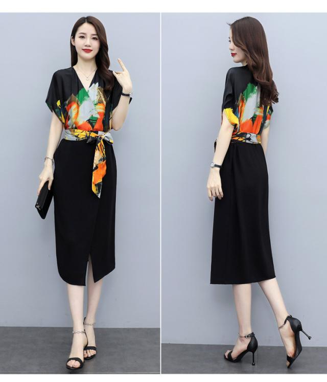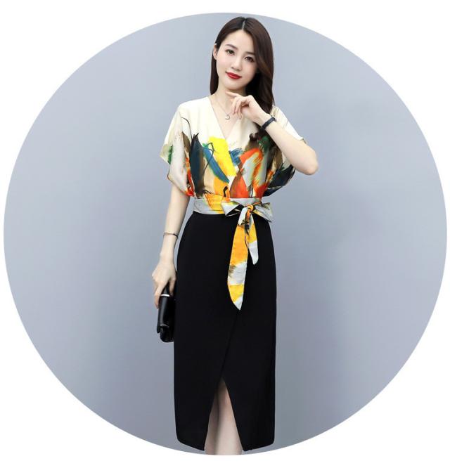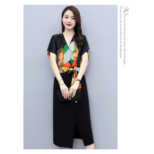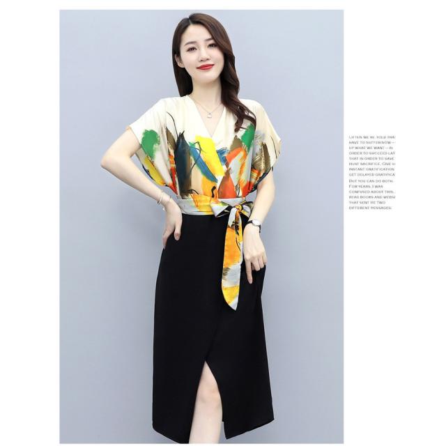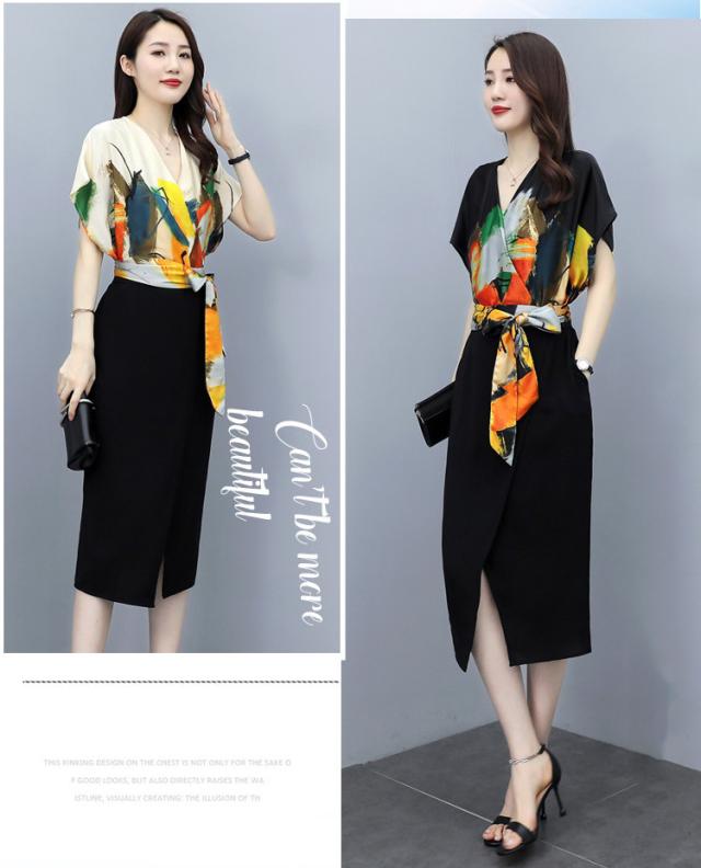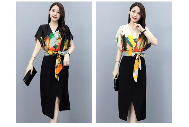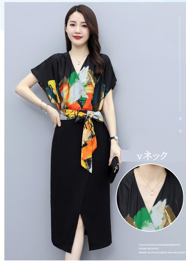 ワンピース レディース 膝丈丈 vネック 30代 40代 夏 花柄 ワンピ オシャレ 配色 通勤