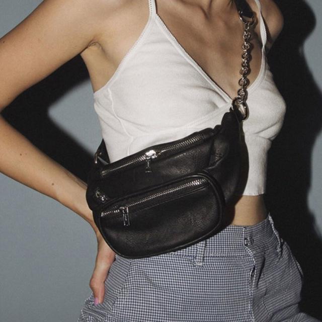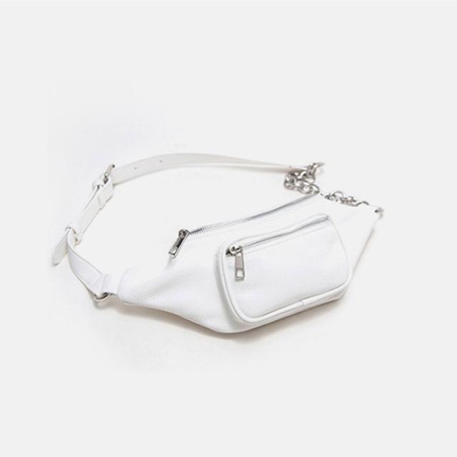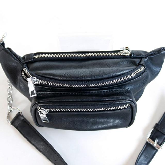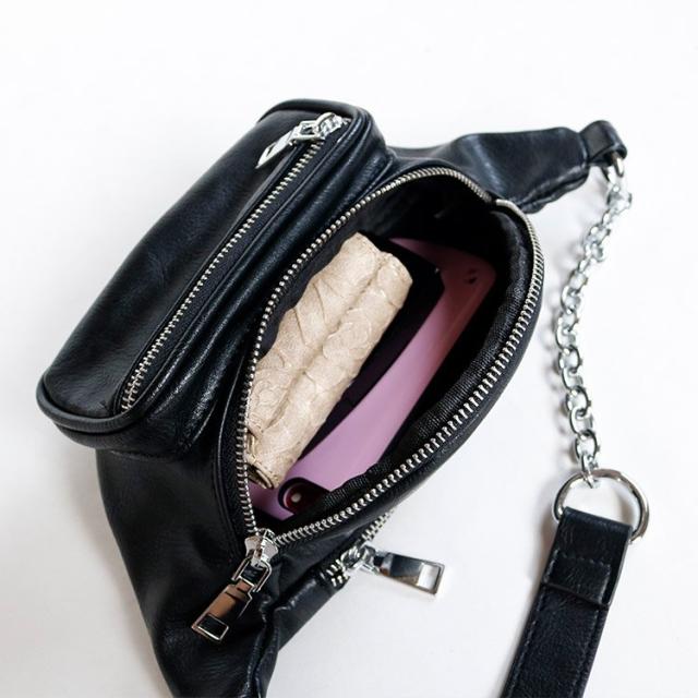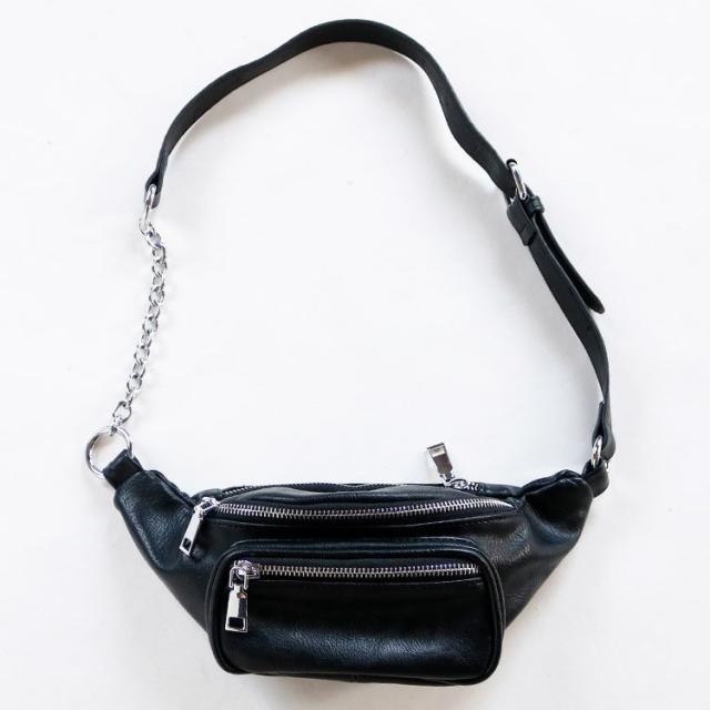 ボディバッグ レディース レザー PU ウエストバッグ チェーン 黒 かっこいい ユニセックス おしゃれ 韓国ファッション メール便