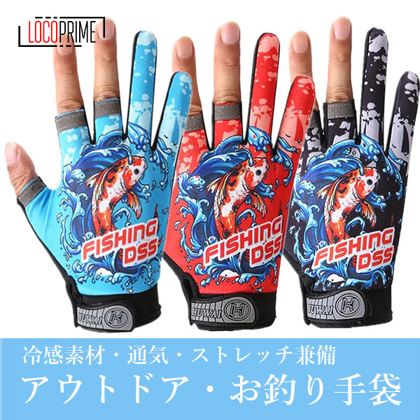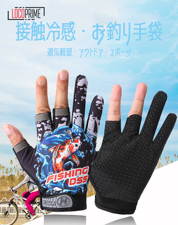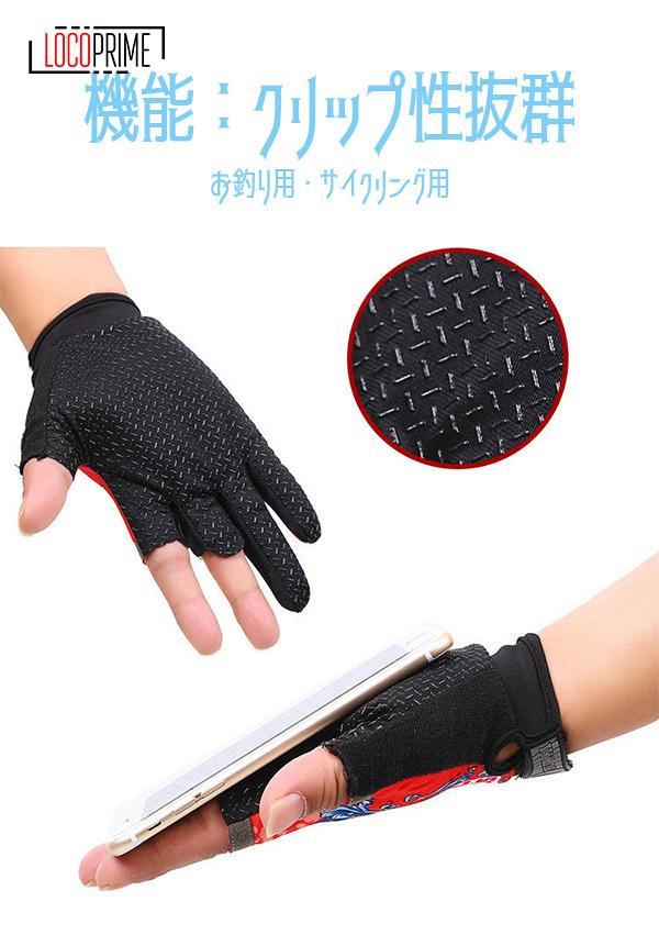 手袋 お釣り用手袋 アウトドアグローブ 冷感素材 接触冷感 通気 滑り止め 3フィンガーレスグローブ 登山 自転車 キャンプ 通気 夏 春秋