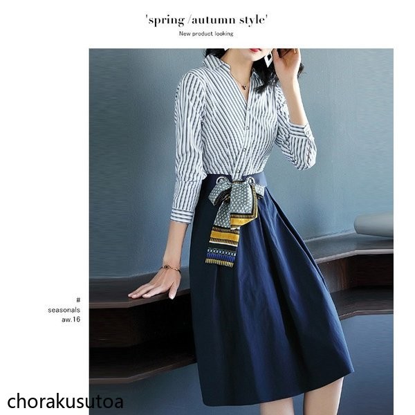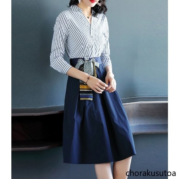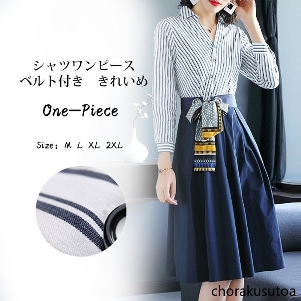 ワンピース レディース きれいめ ドッキングワンピース 40代 シャツワンピース ベルト付き Vネック 九分袖 フォーマルワンピース 上品 入学式 入園式 母の日