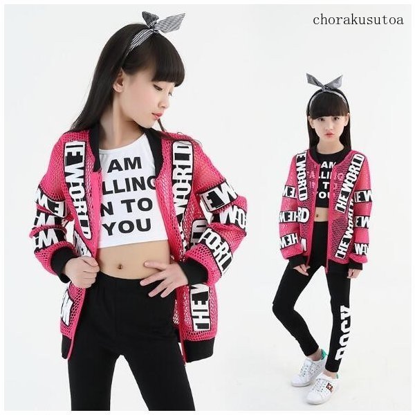 子供ダンス衣装 ジャケット 英語柄 演出服 ステージ服 男の子 女の子 ジャズダンス ヒップホップダンス イベント 発表会 大きいサイズ