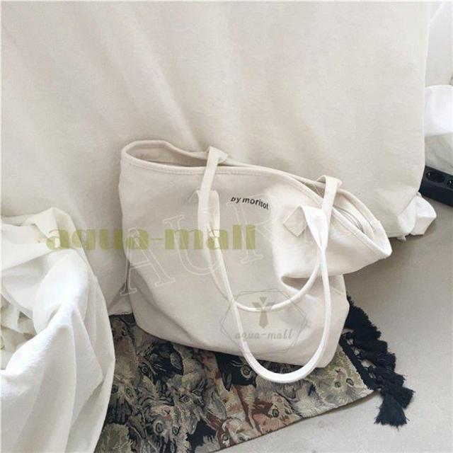 トートバッグ キャンパス シンプル レディース ショルダーバッグ ショッピングバッグ 肩掛け 無地 布 大きめ 軽量 大容量 A4 黒 白