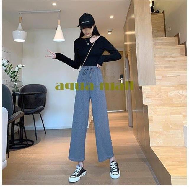 ワイドパンツ レディース 9分丈パンツ ゆったり 春 ロングパンツ ガウチョ カジュアルパンツ ウエストゴム パンツ 九分丈 楽チン ボトムス 秋