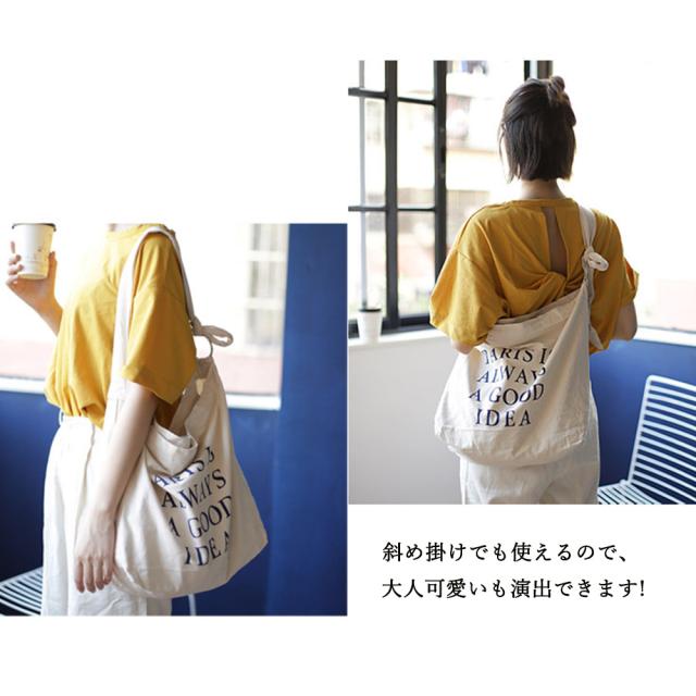 キャンバスバッグ レディース 英字ロゴ 鞄 大容量 エコバッグ おしゃれ バッグ 斜め掛け a4 大きめ ビッグ ショルダーバッグ 3 way