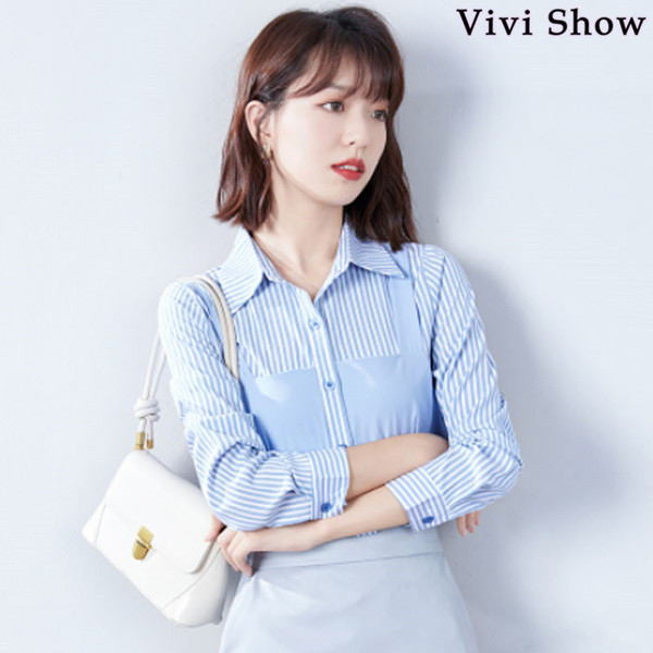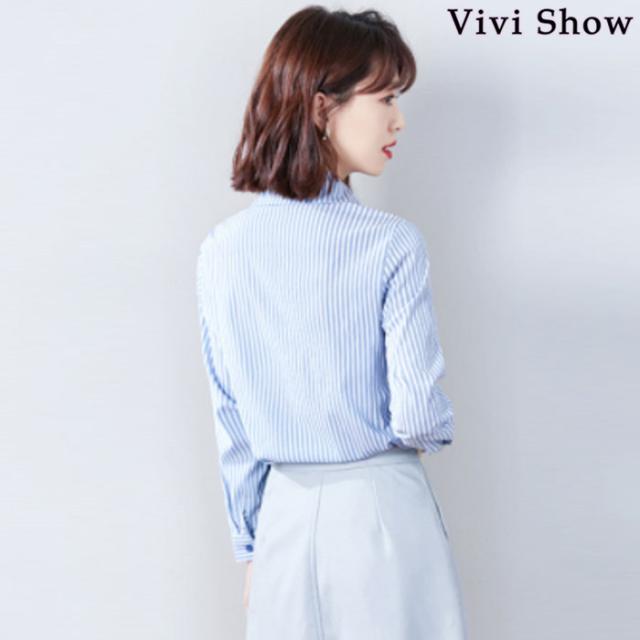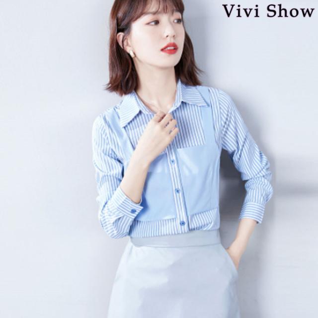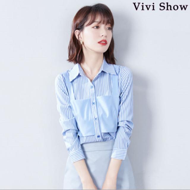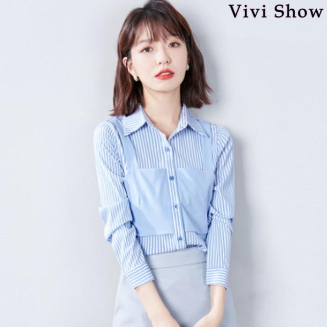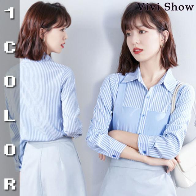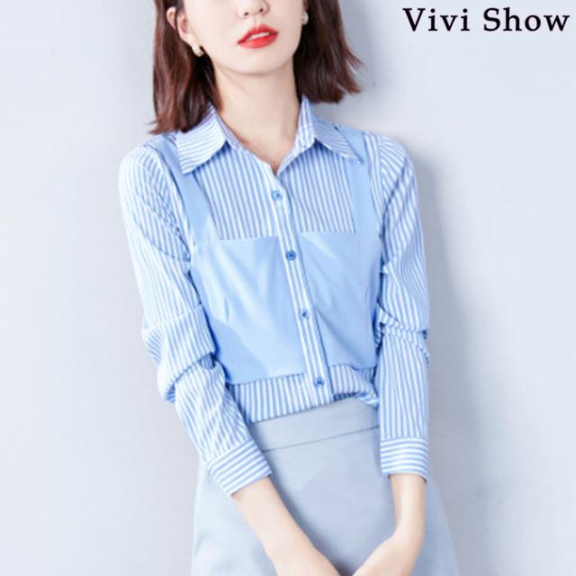 レディース 重ね着風 シャツ カットソー ストライプ 長袖 きれいめ トップス おしゃれ 春夏新作 vivishow