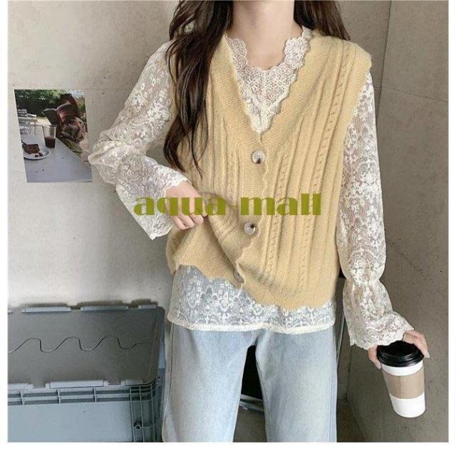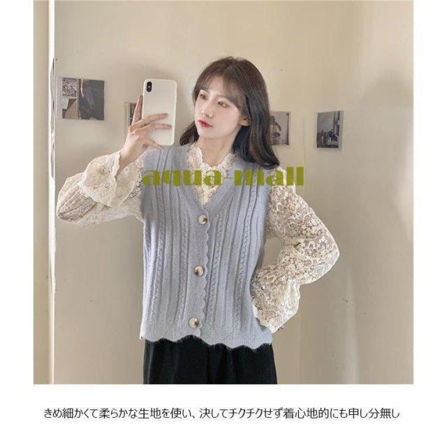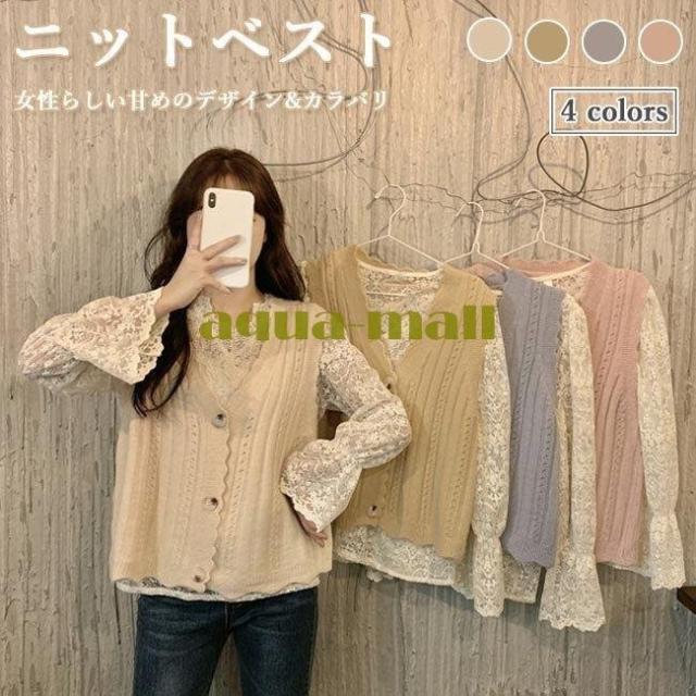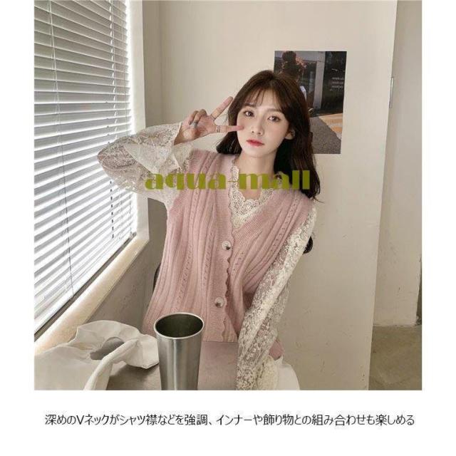 ベスト レディース ジレベスト 前開き ニットベスト Vネック 可愛い ジレ 秋 チョッキ 前開きベスト 春 ニット 甘い レディースベスト