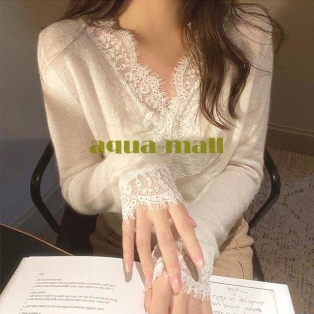 インナー レディース インナーウェア Vネック レース セーター 薄手 モコモコ 肌着 ニットセーター レースインナー 姫系 重ね着 トップス