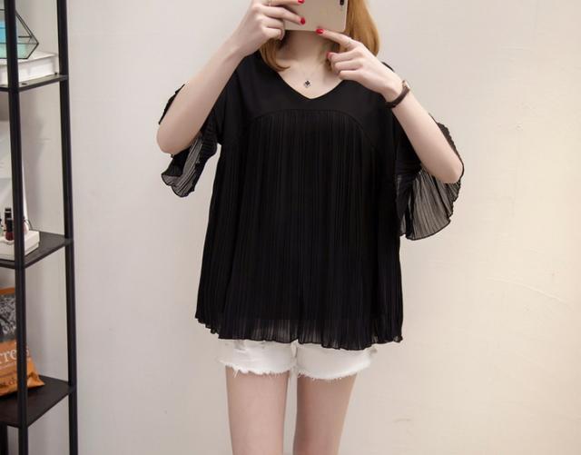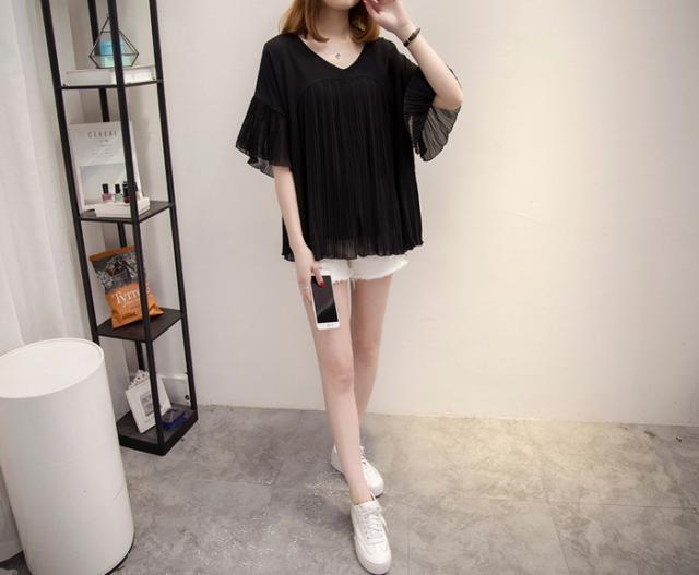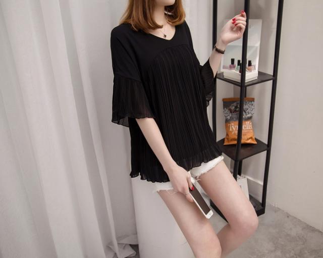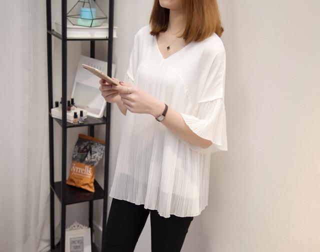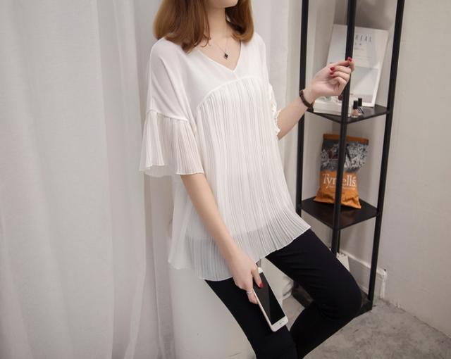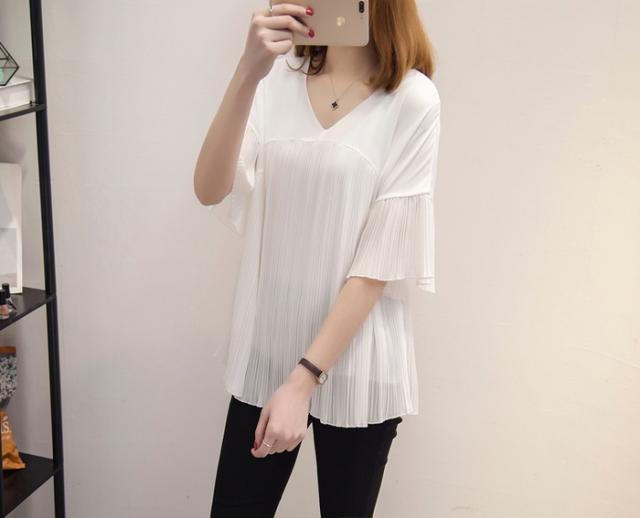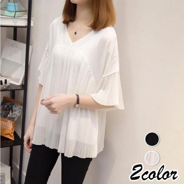 ブラウス レディース 40代 春夏新作 オシャレブラウス シフォンブラウス Vネックブラウス ベルスリーブブラウス 半袖トップス 通勤 ゆったりtシャツ 30代50代