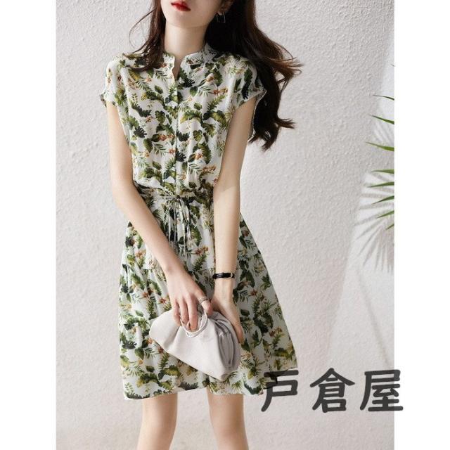 シャツワンピース レディース 40代 膝丈ワンピース 春夏 半袖ワンピース きれいめ 花柄 シフォンスカートaライン 韓国風 オシャレ通勤 大人 着痩せ 30代 50代