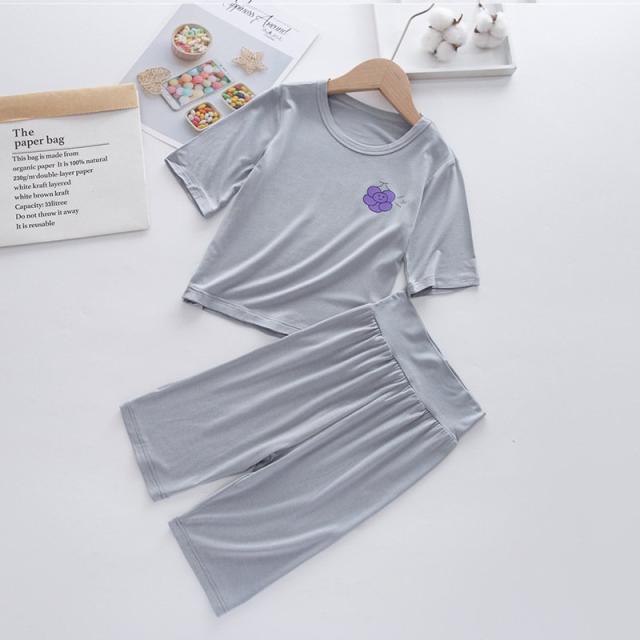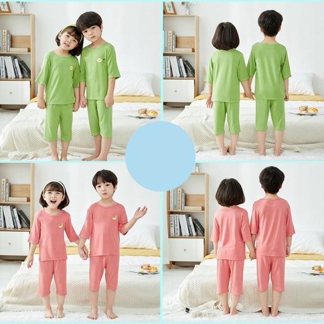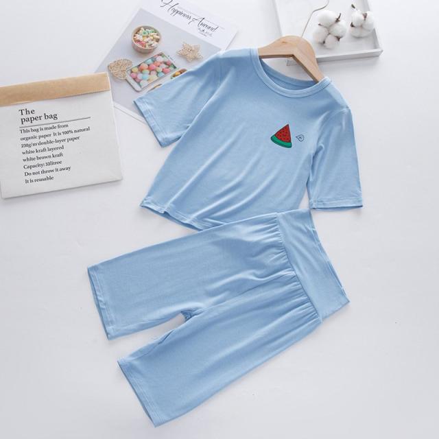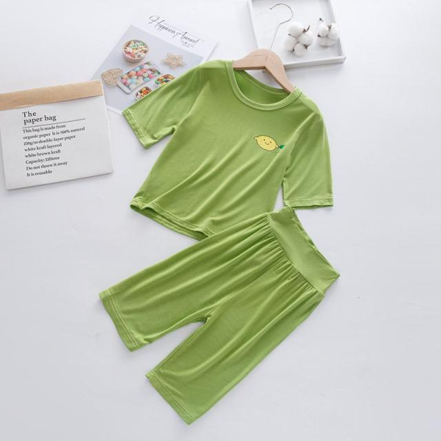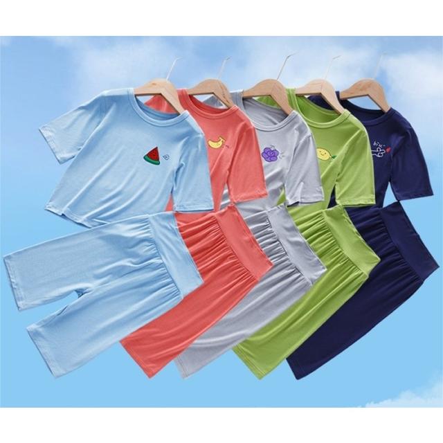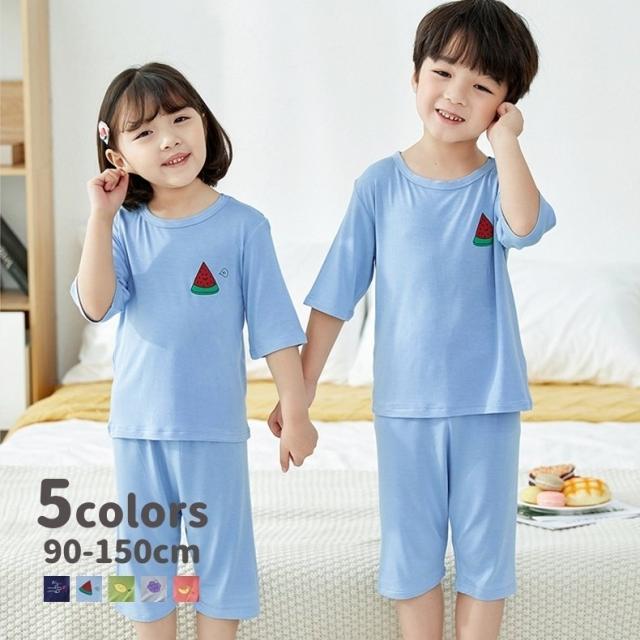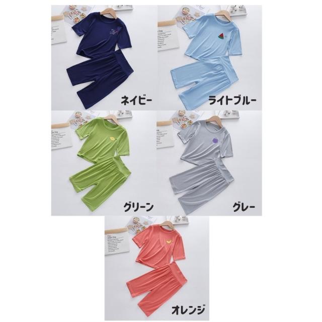 パジャマ 上下セット キッズ 子供服 ユニセックス 女の子 男の子 寝間着 ルームウェア 部屋着 クルーネック 丸首 ハーフパンツ 薄手 フルーツ 果