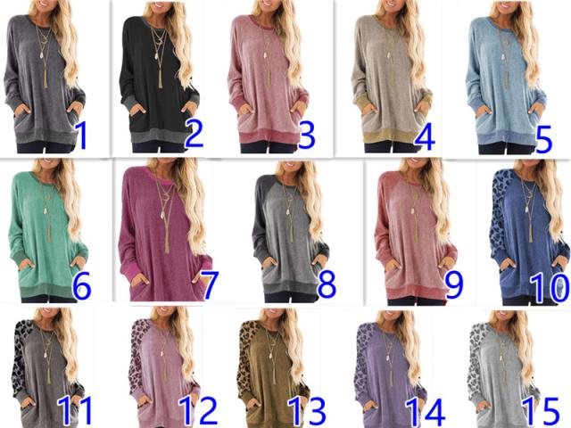 全15色!ロングtシャツ 秋服 春服 ポケット付きtシャツ レディース トレーナー tシャツ ロング丈 チュニックtシャツ プルオーバー ラウンドネック カジュアル ゆったり おしゃれ ヒョウ柄 切り替え