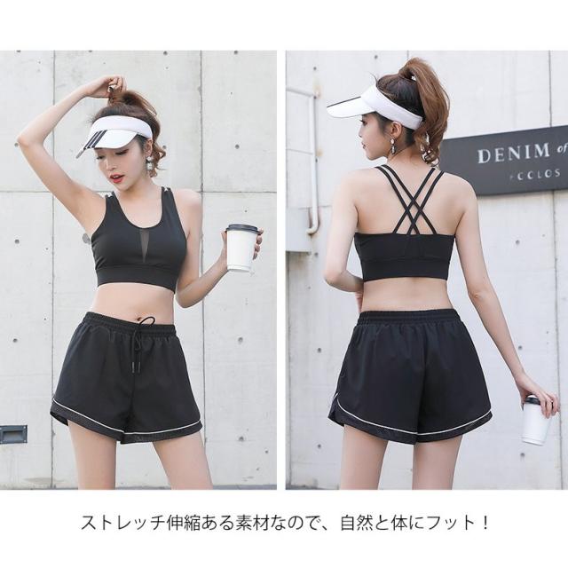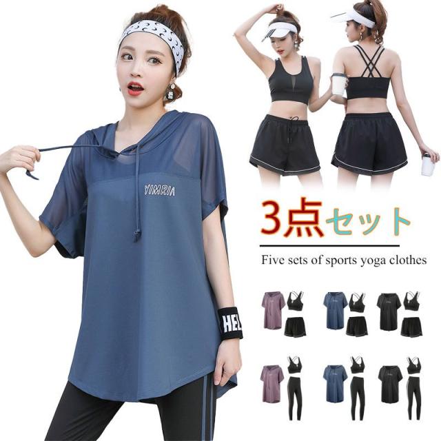 レディース ヨガウェア上下3点セットスポーツウェア 大きいサイズロングタイツレディースショットパンツ パットセット スポーツジム吸汗速乾