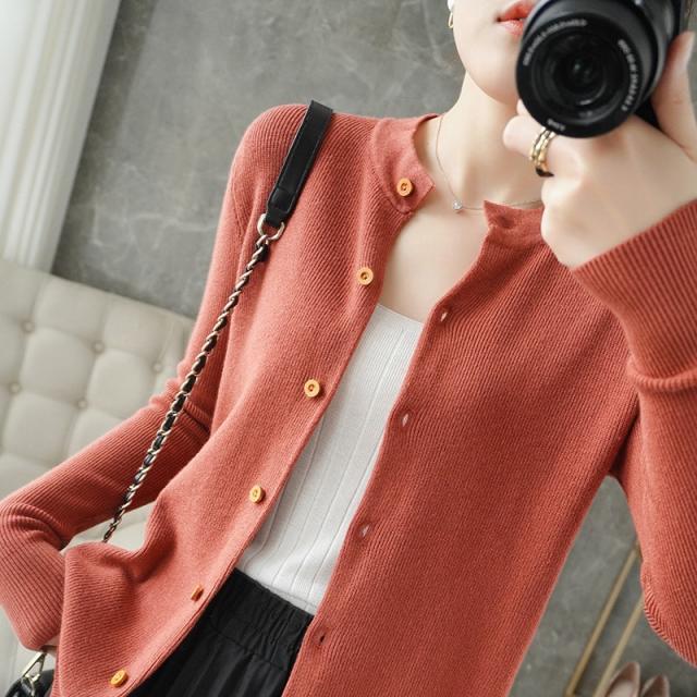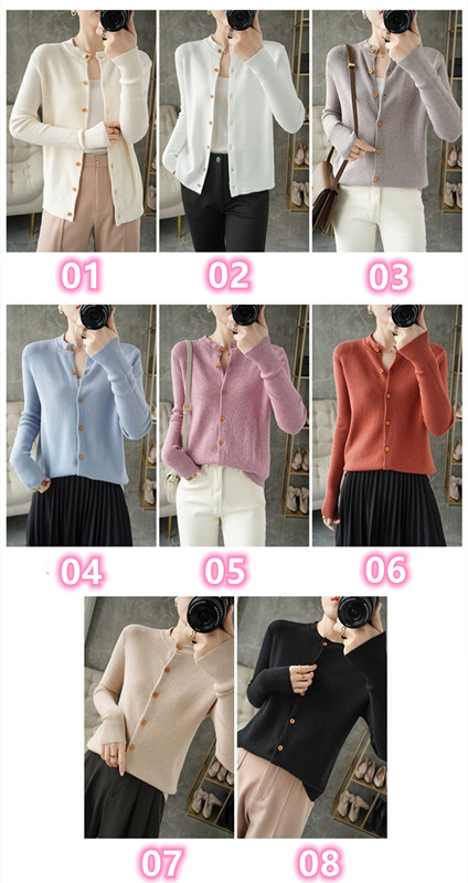 全8色×4サイズ!ラウンドネックカーディガン カーディガン レディース ニットカーディガン 丸首 ボタン 無地カーディガン 羽織り カジュアル 寒さ対策 春 秋 ショート丈