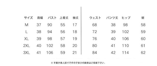 | サイズ | M L XL 2XL 3XL |