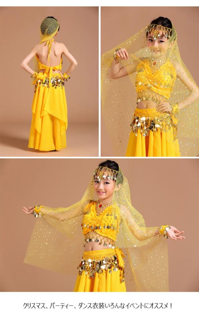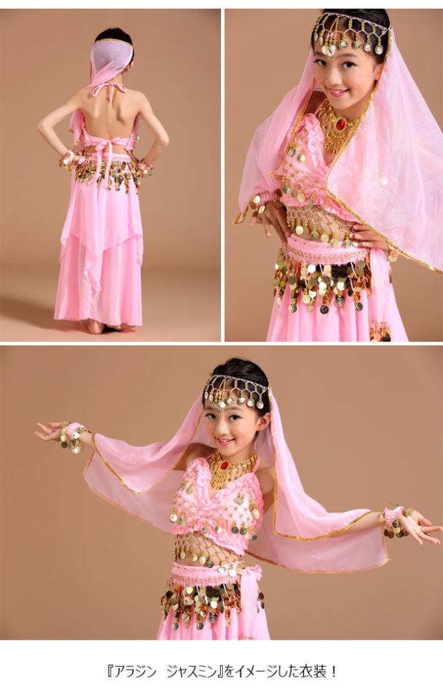 6点セット ベリーダンスセット アラビアン衣装 女の子 アラジン 子供服 アラジンコス スパンコール ダンス衣装 コスプレ 全身セット 上下セット