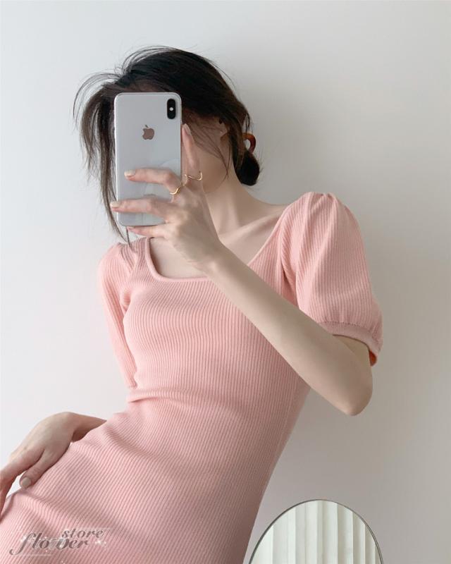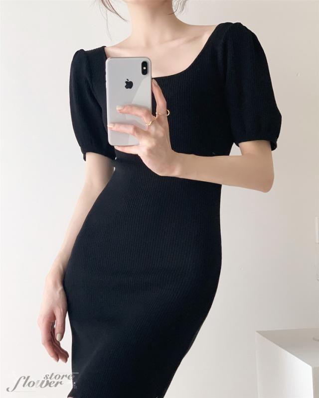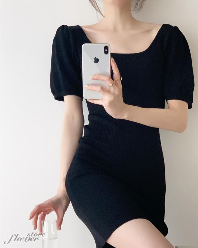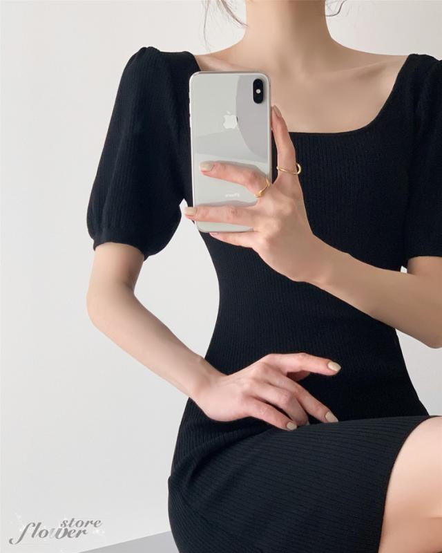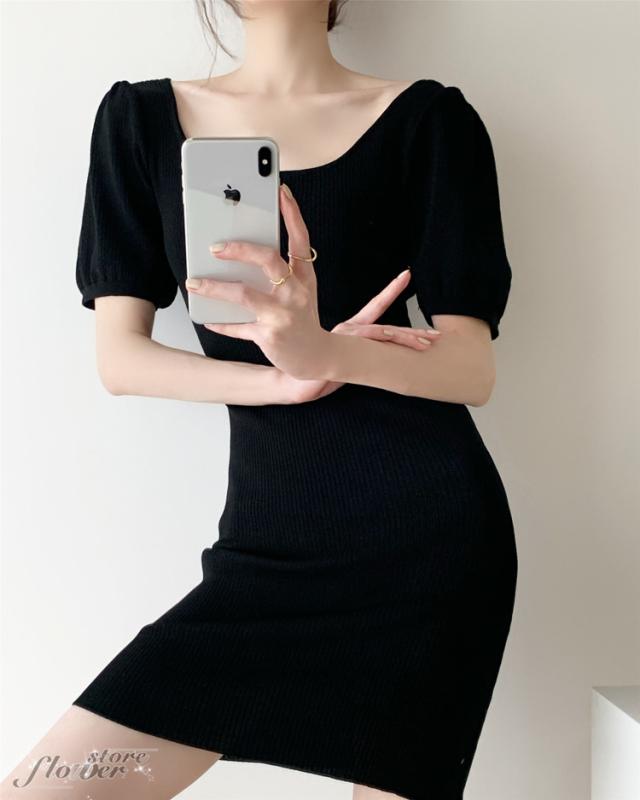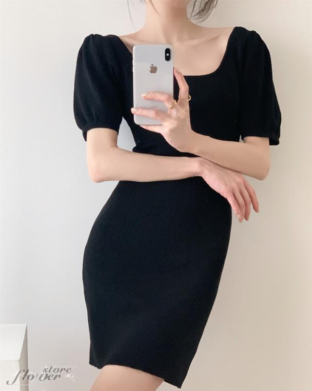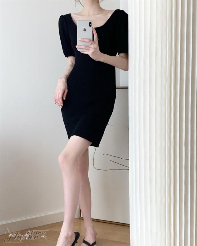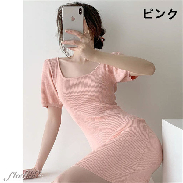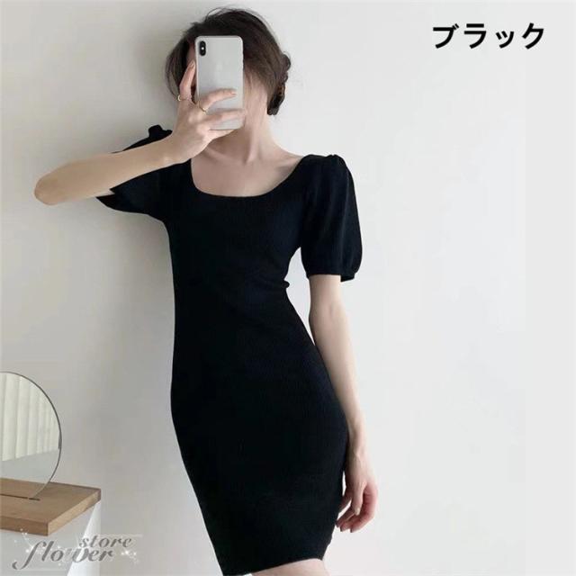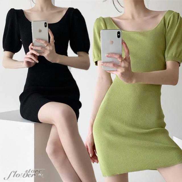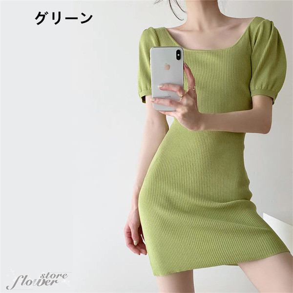 ニットワンピ 夏 タイト ミニ丈 タイトワンピース ミニ スクエアネック ニットワンピース セクシー