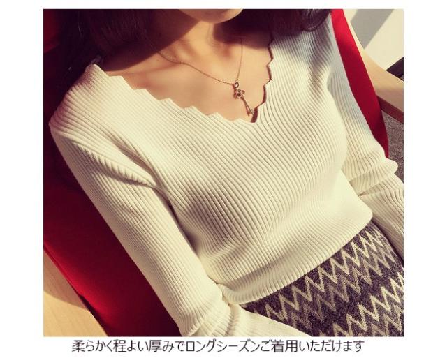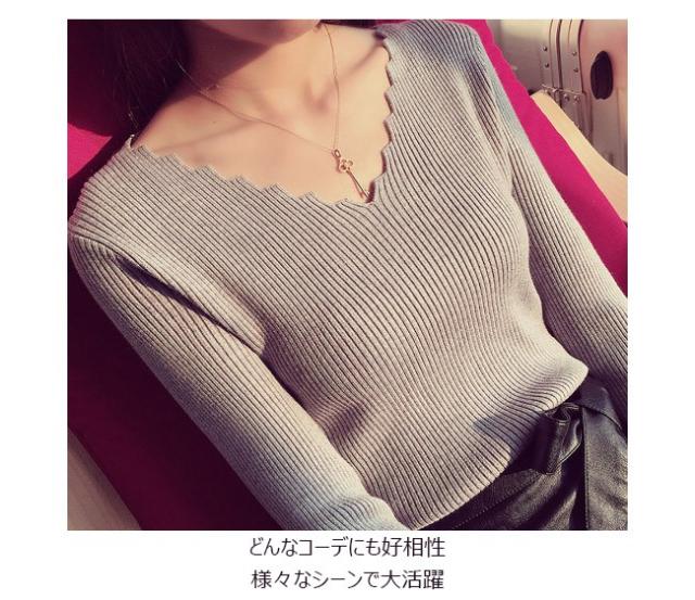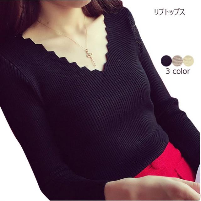 リブトップス レディース ニット ストライプ柄 リブ編み 長袖 Vネック トップス オシャレ 秋 冬 春 2020秋冬新作