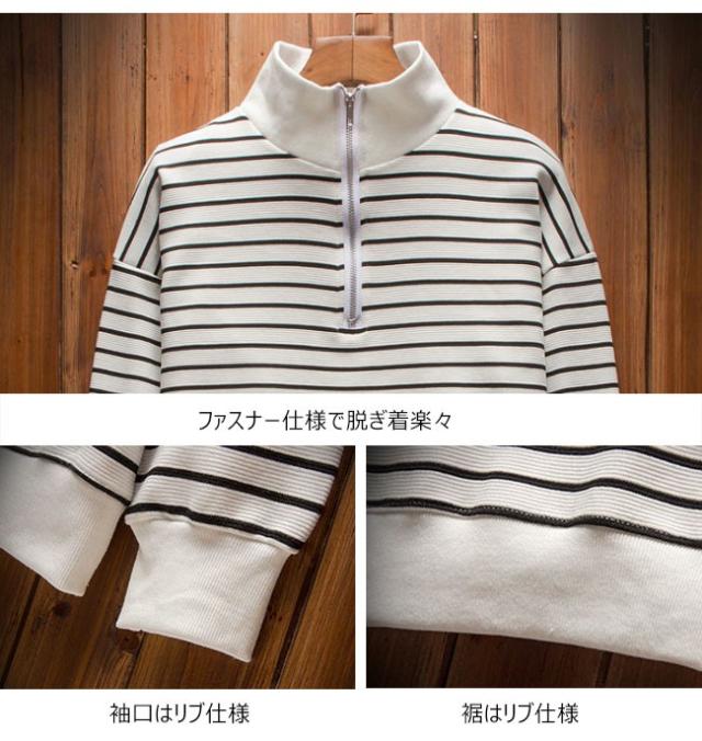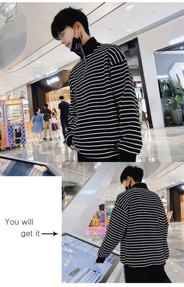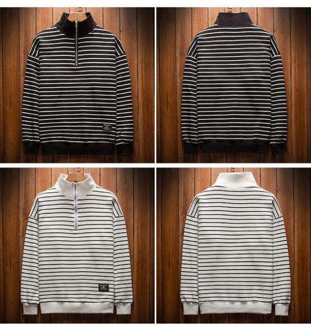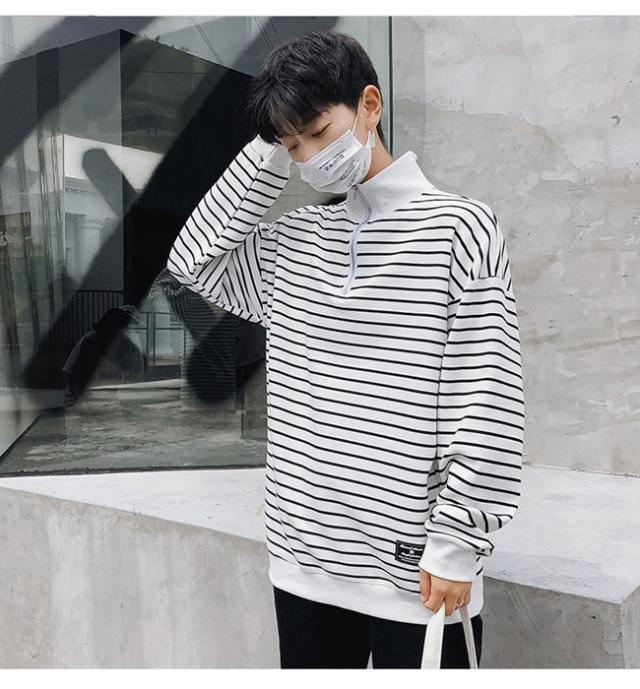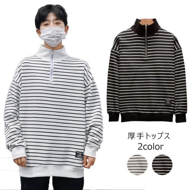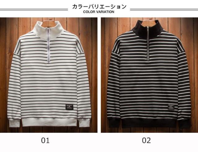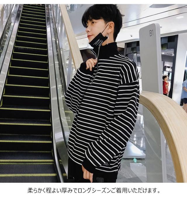 厚手トップス メンズ トレーナー ハイネック ストライプ柄 ボーダー 長袖 ヘンリーネック カジュアル 秋 冬 春 2020秋冬新作