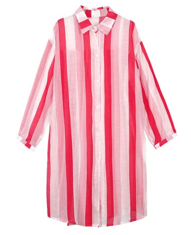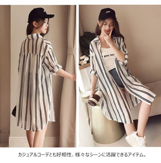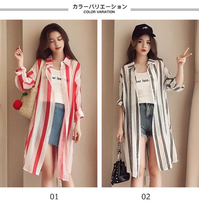 カーディガン レディース 長袖 ロングシャツ ストライプ ボーダー 薄手 透け感 大きいサイズ トップス ゆったり 冷房対策 春 夏 秋