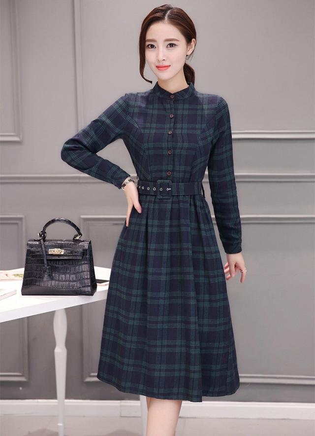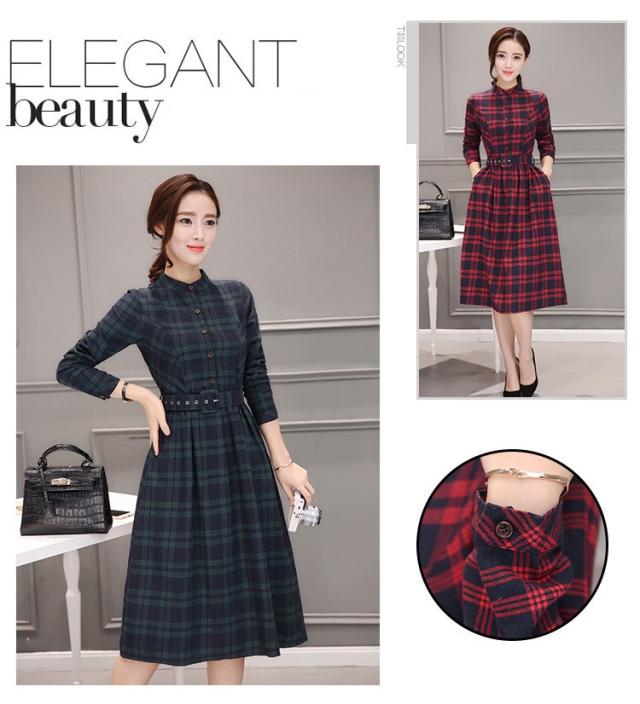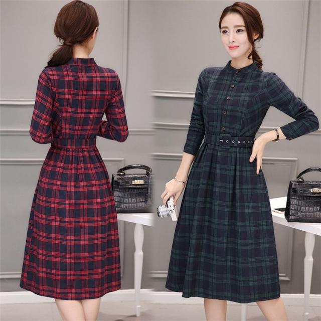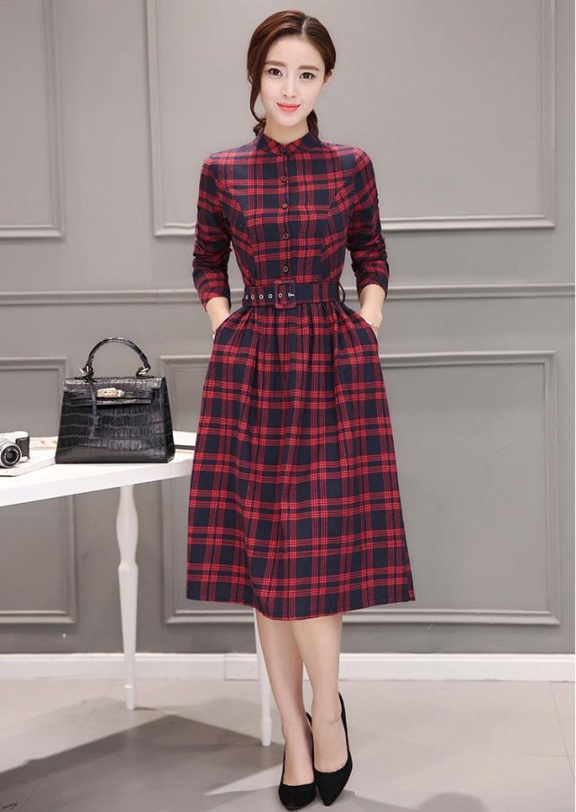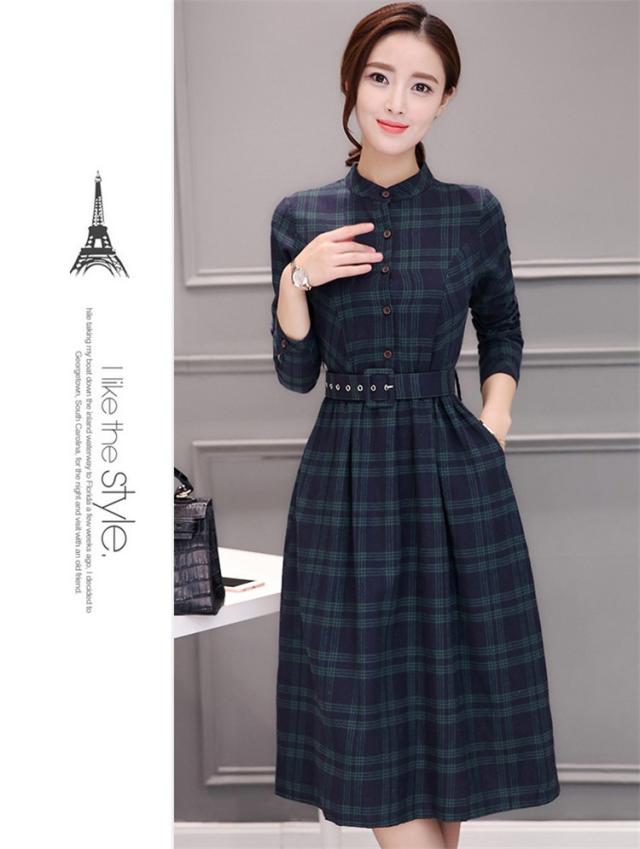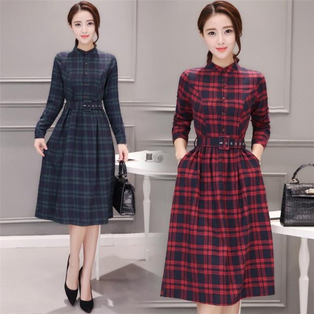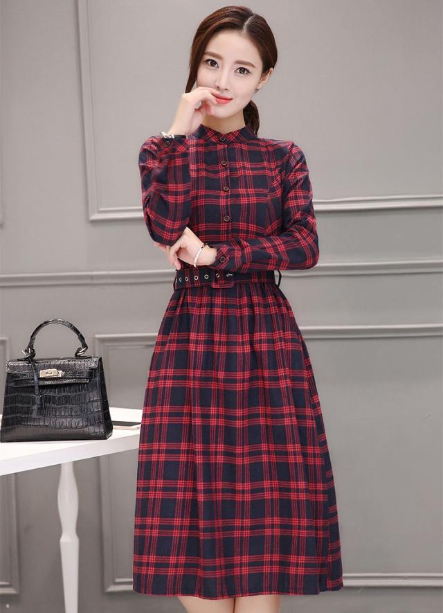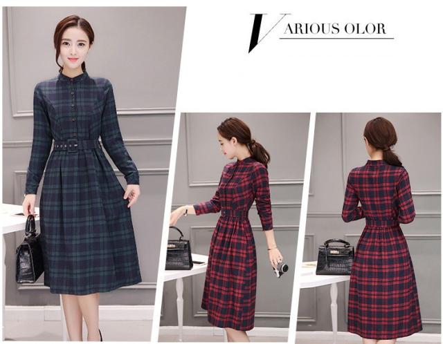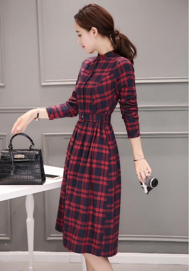 シャツワンピース レディース ロング 40代 長袖 春秋 きれいめ ワンピース チェック柄 大きいサイズ パーティードレス 上品 韓国風 おしゃれ 通勤 着痩せ 可愛い