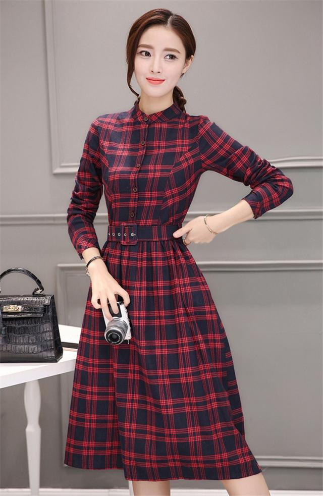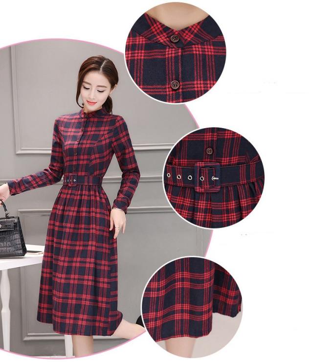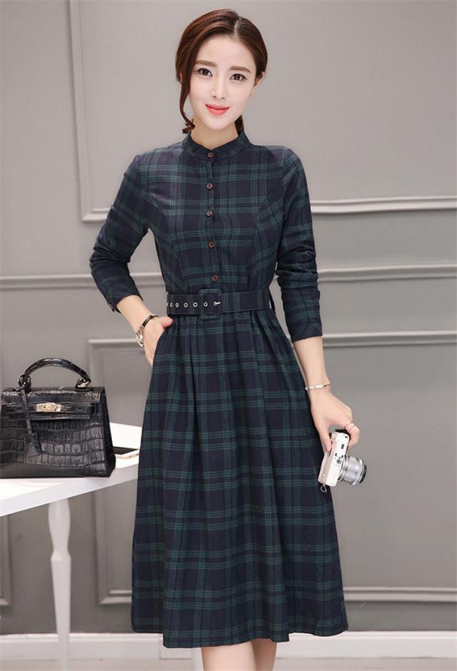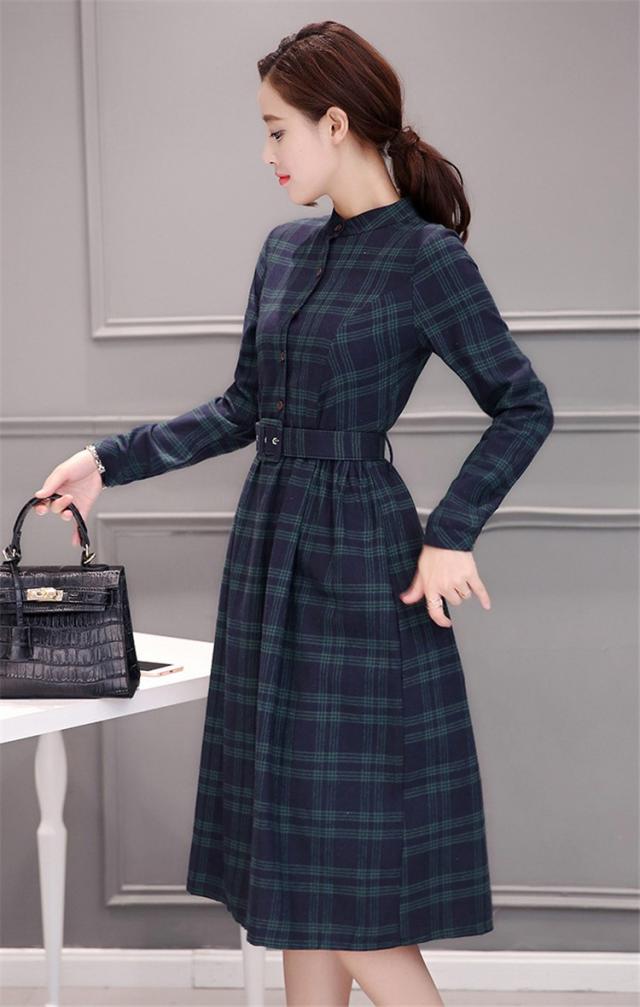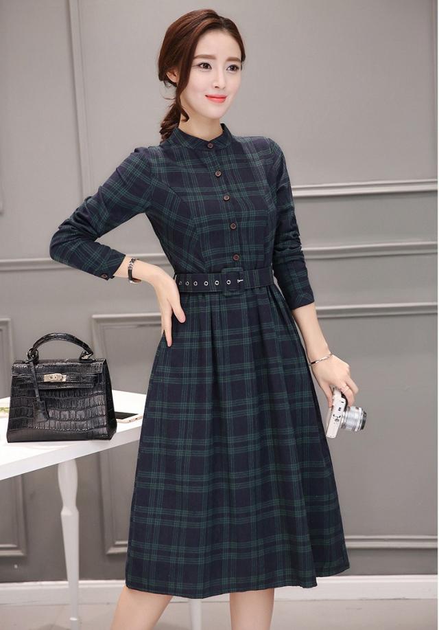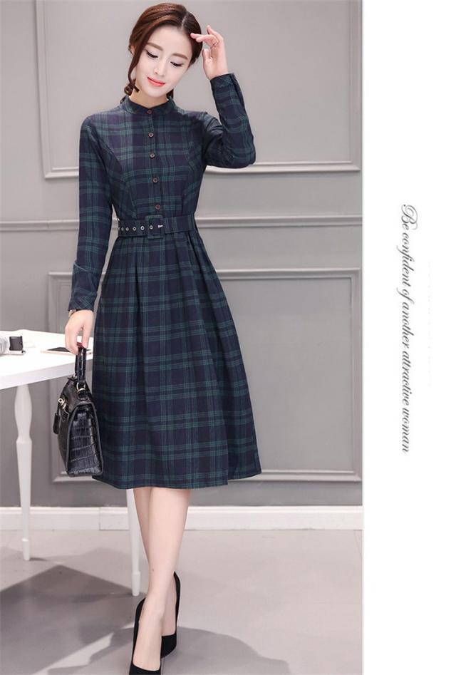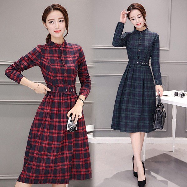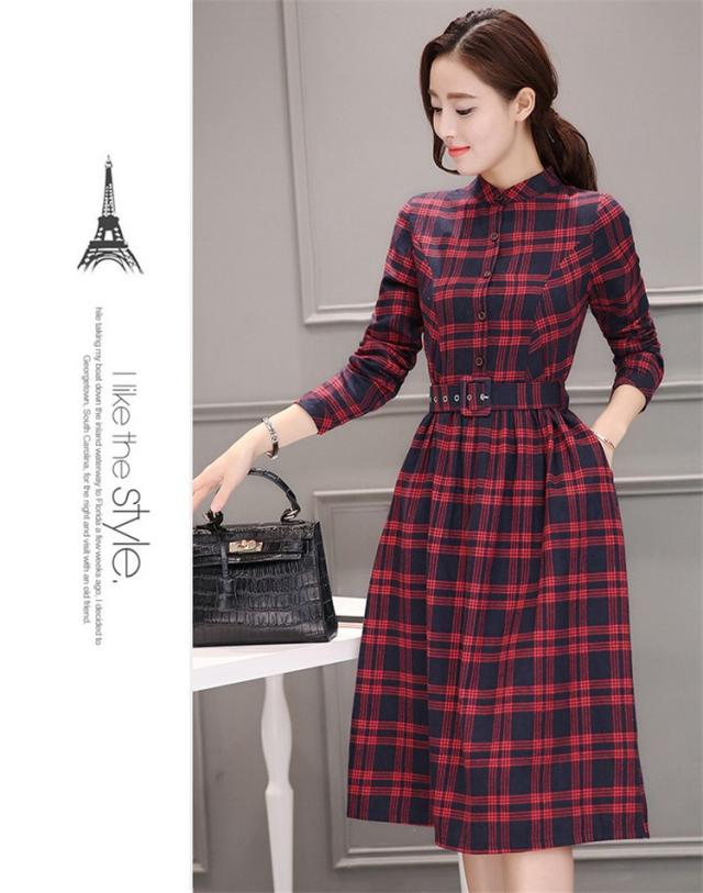 シャツワンピース レディース ロング 40代 長袖 春秋 きれいめ ワンピース チェック柄 大きいサイズ パーティードレス 上品 韓国風 おしゃれ 通勤 着痩せ 可愛い